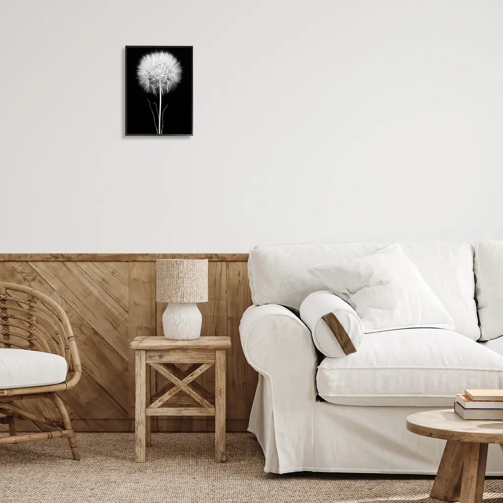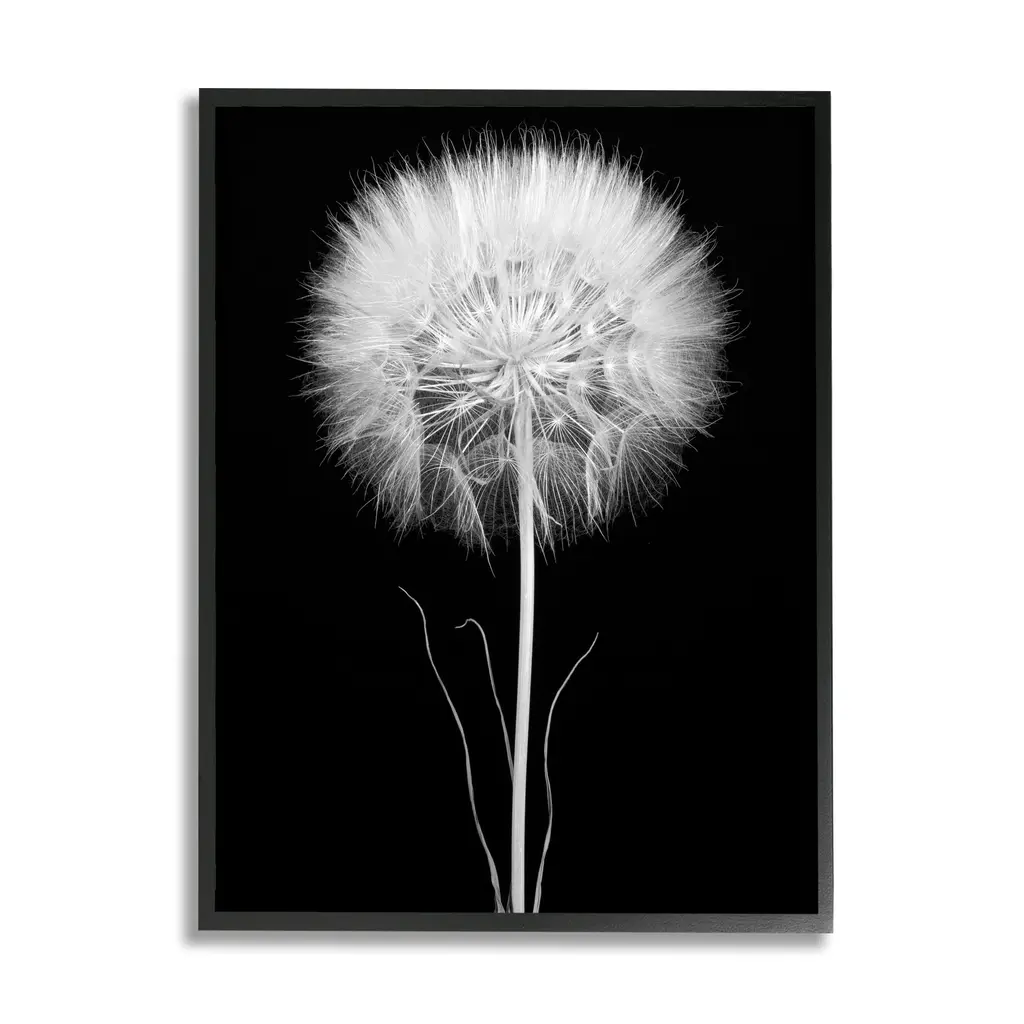 Stupell Modern Fluffy Dandelion Stem Black & White Photography Framed Wall Art - 11 X 14 - Black