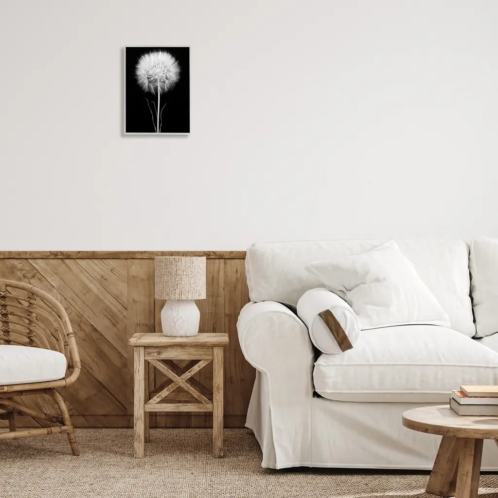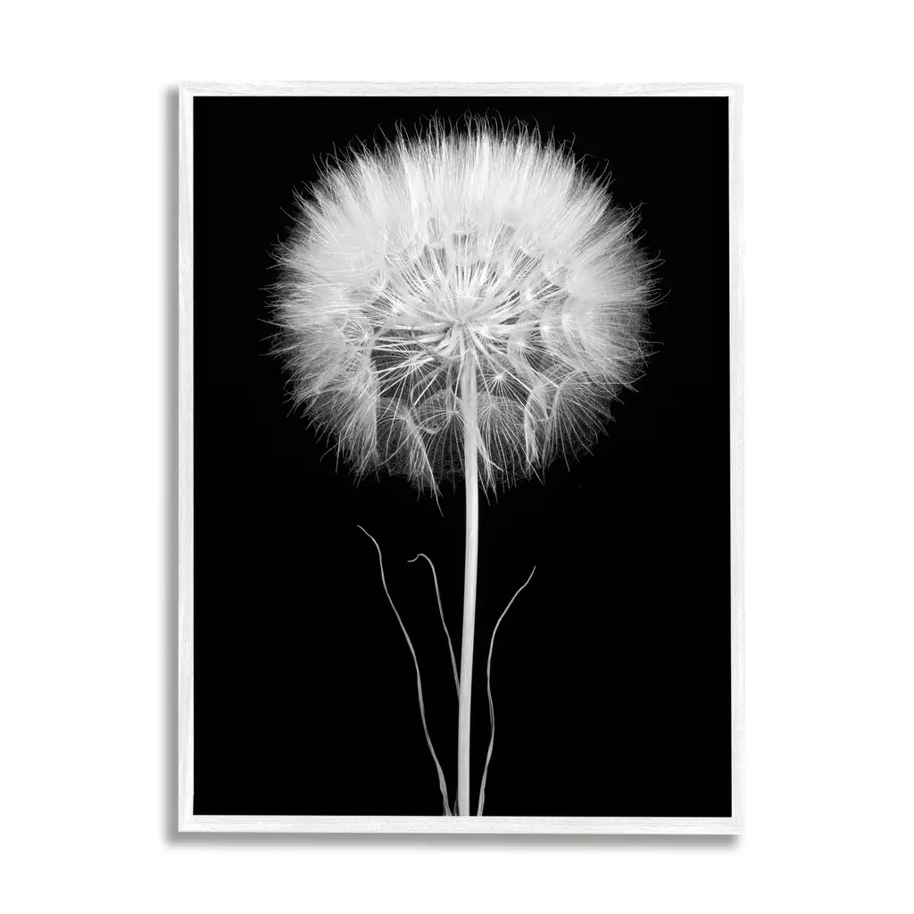 Stupell Modern Fluffy Dandelion Stem Black & White Photography Framed Wall Art - 11 X 14 - Grey