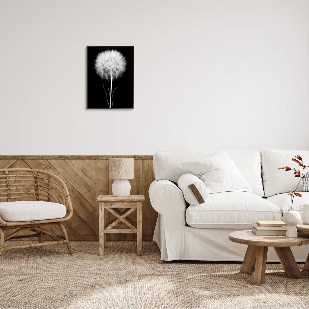 Stupell Modern Fluffy Dandelion Stem Black & White Photography Framed Wall Art - 16 X 20 - Black