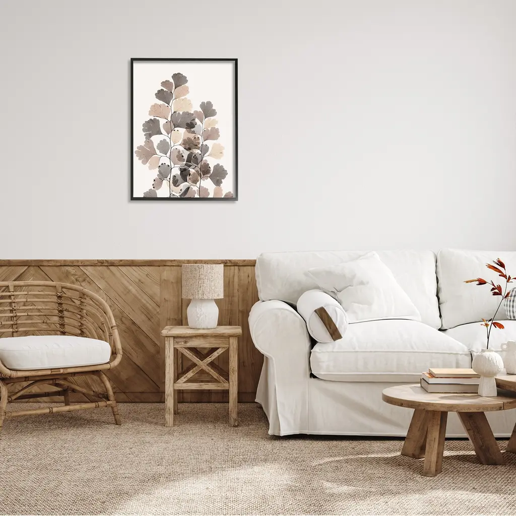 Stupell Modern Ginkgo Leaf Arrangement Translucent Brown Grey Leaves Framed Wall Art - 24 X 30 - Black