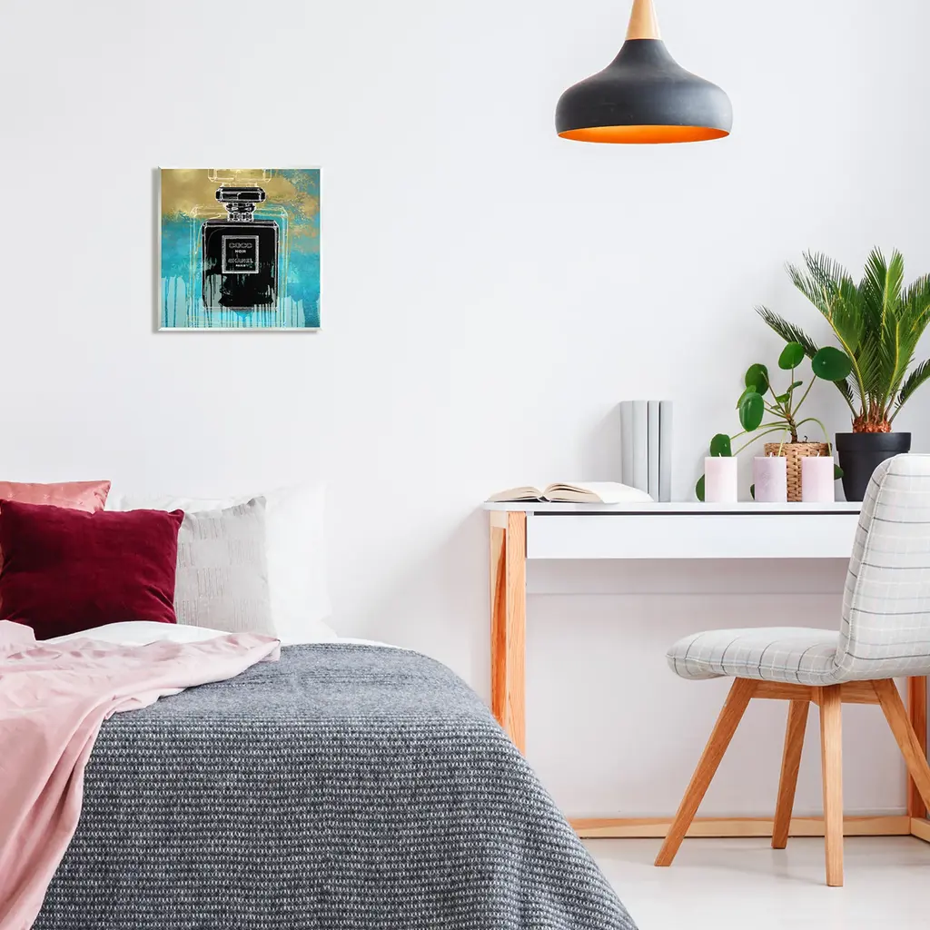 Our wall plaques start as high-quality lithograph prints mounted on durable 0.5-inch thick MDF wood. Each piece is hand finished and comes with a fresh layer of white foil on the sides to give it a crisp, clean look. Plaques arrive ready to hang without installation and come with removable plastic corners to keep them from damage in transit. Stupell Wall Art is made in the USA.Features: Dimensions: 12 x 0.5 x 12 InchesWall Art is Ready to Hang with Hardware Free Hanging. No installation required. For Easy Set Up Lean or Layer Artwork on Shelf or Against Wall.All of our wall plaques start off as high quality lithograph prints that are then mounted on durable 0.5 inch thick MDF wood. Each piece is hand finished and comes with a fresh layer of foil on the sides to give it a crisp clean look. Made In USA.Artwork Relates To: Bottle, Perfume, Modern, Fashion, Glam, BlueDesign by Madeline Blake