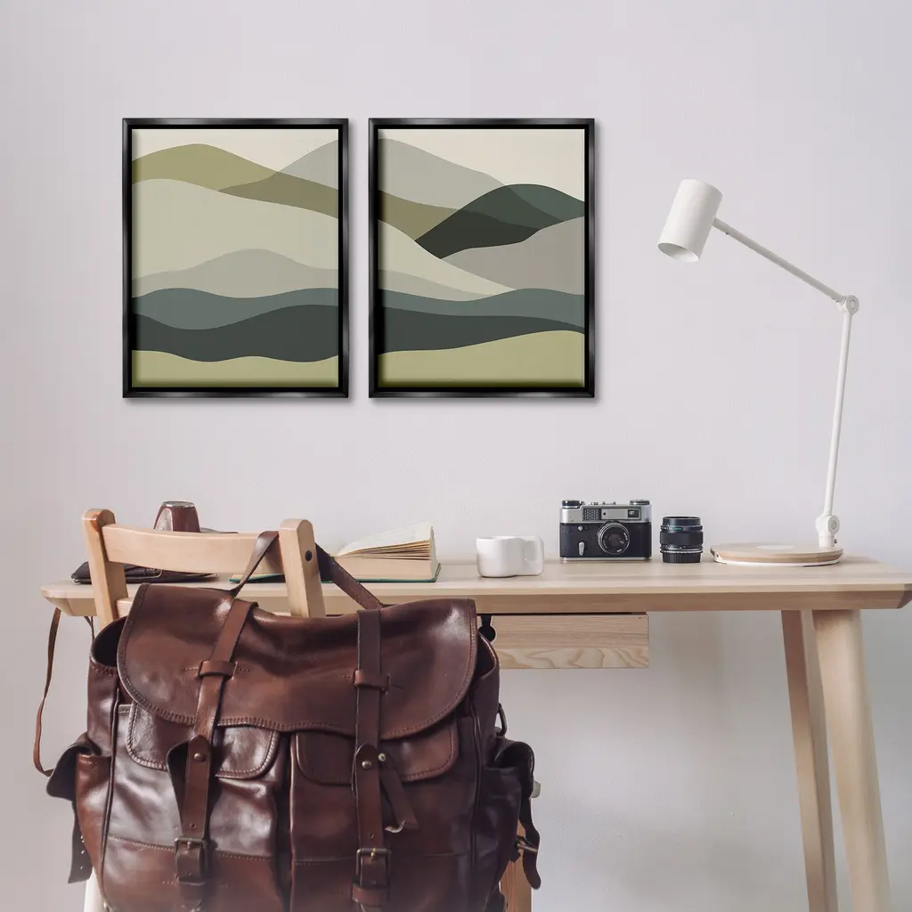 Elevate your home or office to the next level with Stupell Framed Floating Canvas Wall Art. Our premium hand-stretched canvas is mounted securely into a sturdy lightweight frame. The museum-style gap between the wrapped canvas and the box frame gives the illusion of floating artwork. Stupell Wall Art is made in the USA.Features: Dimensions: 2 Piece Set, Each Frame is 17 x 1.7 x 21Two Piece Floater Framed Canvas are available as 17x21 or 25x31 Panels. All Floater Frame Products have a 1.7" Depth.Wall Art is Ready to Hang with Hardware Free Hanging. No Installation required. For Easy Set Up Lean or Layer Artwork on Shelf or Against Wall. Artwork is Permently Fixed into the Frame.Our elevated 1.7" Thick Floating Frame is the perfect complement to our canvas style Wall Art. We use only the highest quality inks in house with industry leading printing solutions. Canvas is hand stretched over a durable wood foundation and then mounted securly into a Modern Box Frame. Made in the USA.Artwork Relates To: Abstract, Landscape, Hill, Rural, Country, Mountain, Modern, PatternDesign by Lil' Rue
