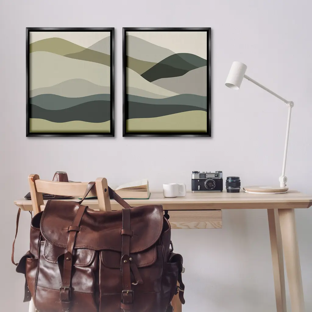 Stupell Modern Green Mountains Framed Floater Canvas Wall Art Design By Lil' Rue (Set Of 2) - 25 X 31 - Black