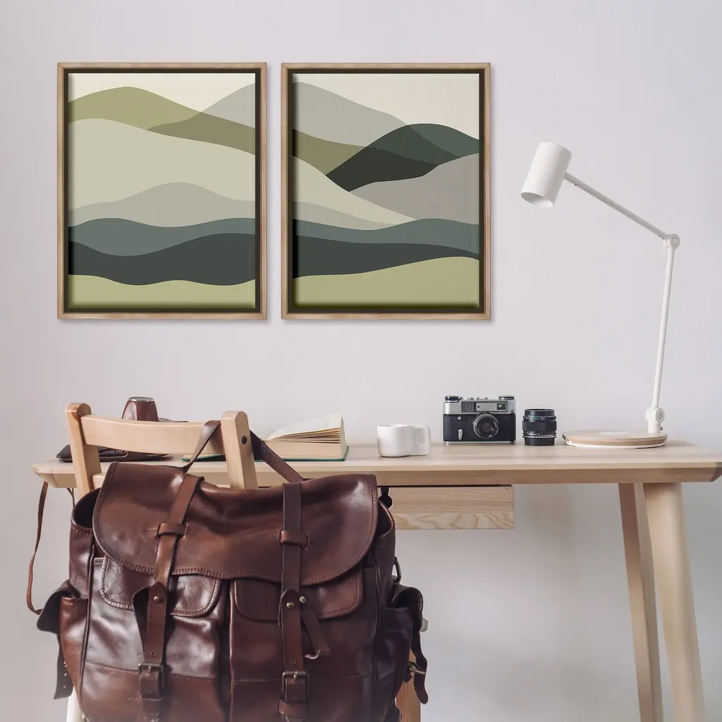 Elevate your home or office to the next level with Stupell Framed Floating Canvas Wall Art. Our premium hand-stretched canvas is mounted securely into a sturdy lightweight frame. The museum-style gap between the wrapped canvas and the box frame gives the illusion of floating artwork. Stupell Wall Art is made in the USA.Features: Dimensions: 2 Piece Set, Each Frame is 17 x 1.7 x 21Two Piece Floater Framed Canvas are available as 17x21 or 25x31 Panels. All Floater Frame Products have a 1.7" Depth.Wall Art is Ready to Hang with Hardware Free Hanging. No Installation required. For Easy Set Up Lean or Layer Artwork on Shelf or Against Wall. Artwork is Permently Fixed into the Frame.Our elevated 1.7" Thick Floating Frame is the perfect complement to our canvas style Wall Art. We use only the highest quality inks in house with industry leading printing solutions. Canvas is hand stretched over a durable wood foundation and then mounted securly into a Modern Box Frame. Made in the USA.Artwork Relates To: Abstract, Landscape, Hill, Rural, Country, Mountain, Modern, PatternDesign by Lil' Rue