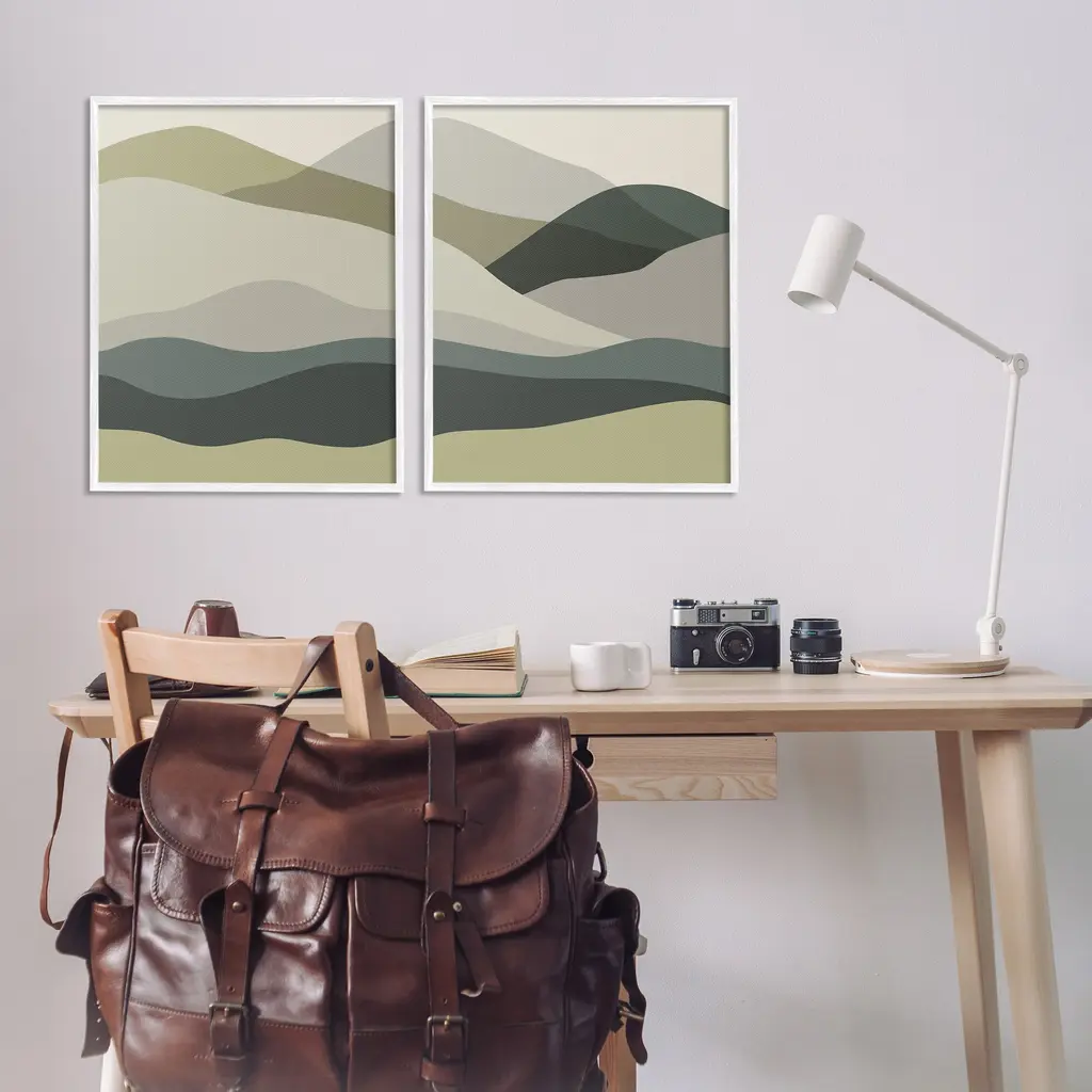 Fill any space in your home or office with our Framed Wall Art Sets. Our framed artwork is securely mounted into a 1.5-inch thick wood grain frame and ready to hang. Frames are available in three alluring styles: black, gray farmhouse and white. Stupell Wall Art is made in the USA.Features: Dimensions: 2 Piece Set, Each Panel is 11 x 1.5 x 14 FramedTwo Piece Framed Giclee Sets are available as 11"x14", 16"x20" or 24"x30" Panels. All Framed Giclee Products have a 1.5" Depth.Wall Art is Ready to Hang with Hardware Free Hanging. No installation required. For Easy Set Up Lean or Layer Artwork on Shelf or Against Wall.Curated Wall Art Sets make it easy for you complete the theme for any room. Our giclée prints are carefully mounted on a durable MDF backing, and then perfectly finished in a 1.5 inch thick woodgrain frame. Mounted frame colors include black, gray farmhouse and white. Made In USA.Artwork Relates To: Abstract, Landscape, Hill, Rural, Country, Mountain, Modern, PatternDesign by Lil' Rue