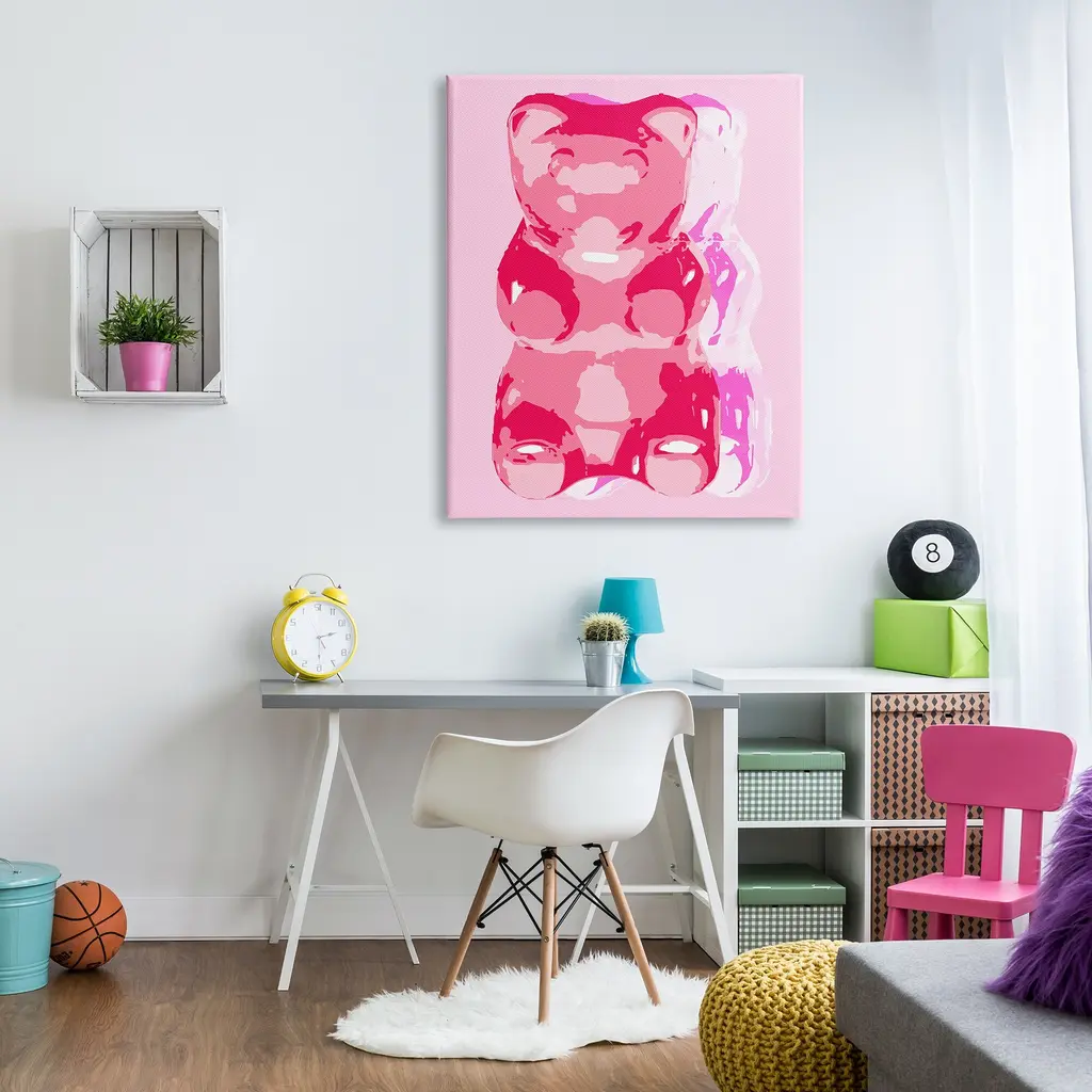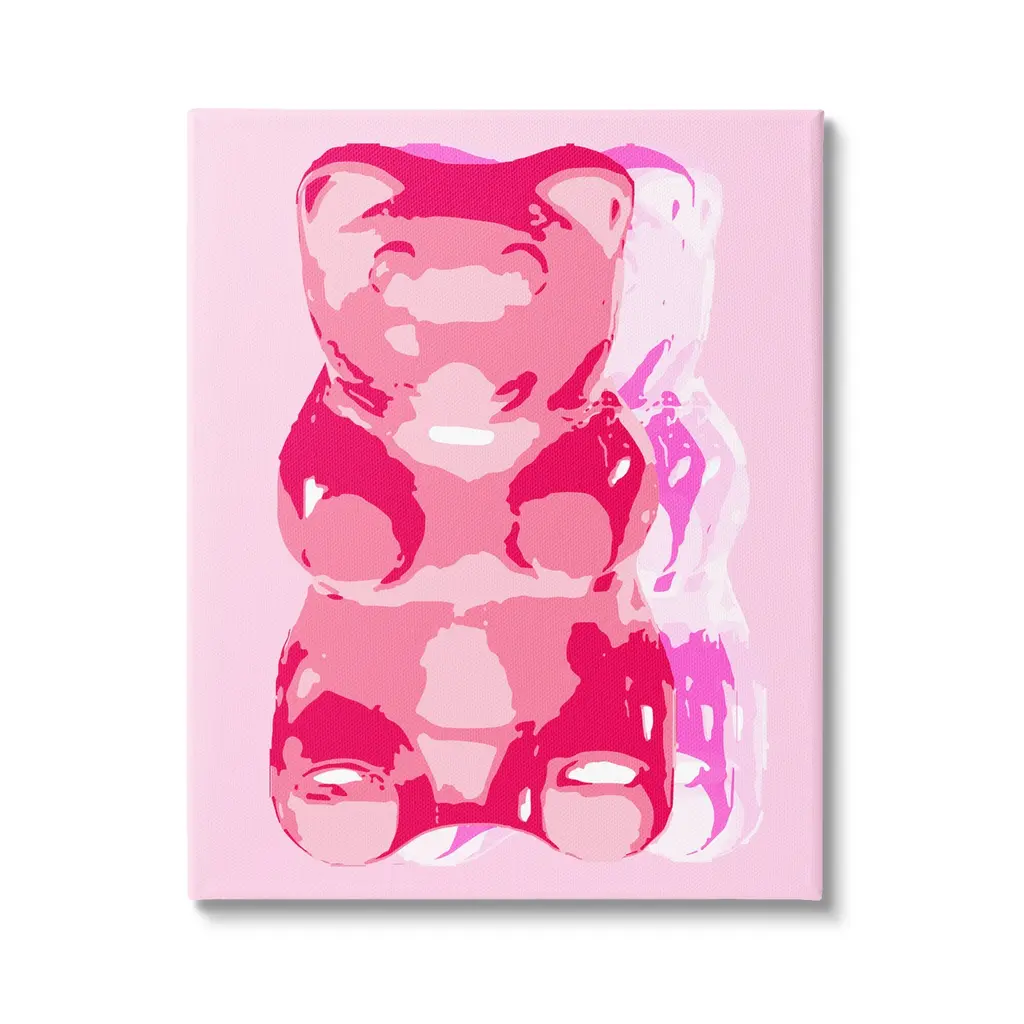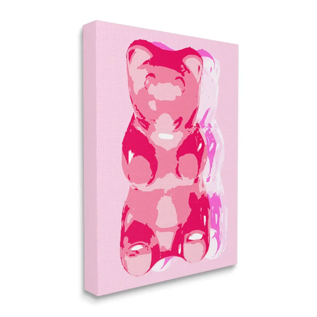 We create our stretched canvas to the highest standards. Using only the highest quality inks and canvas on Mimaki printers, we hand-cut and stretch each piece over a 1.5-inch thick wooden frame for hanging. As a result, the art comes ready to hang on the sturdy ledge with no installation required. Stupell Wall Art is made in the USA.Features: Dimensions: 16 x 1.5 x 20 InchesStretched Canvas Sizes Include Standard: 16 x 1.5 x 20 Large: 20 x 1.5 x 30 X-Large: 30 x 1.5 x 40 Oversized: 36 x 1.5 x 48Wall Art is Ready to Hang with Hardware Free Hanging. No installation required. For Easy Set Up Lean or Layer Artwork on Shelf or Against Wall.Our stretched canvas is created with the highest standards. We use only the highest quality inks and canvas on our in house Mimaki printers, and then hand cut and stretch each piece over a 1.5 inch thick wooden frame for hanging. Made In USA.Artwork Relates To: Food, Candy, Gummy Bear, PinkDesign by Lil' Rue
