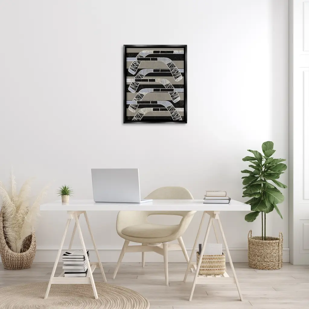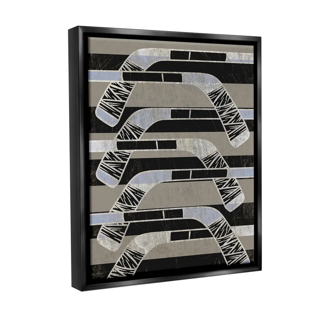 Elevate your home or office to the next level with Stupell Framed Floating Canvas Wall Art. Our premium hand-stretched canvas is mounted securely into a sturdy lightweight frame. The museum-style gap between the wrapped canvas and the box frame gives the illusion of floating artwork. Stupell Wall Art is made in the USA.Features: Dimensions: 17 x 1.7 x 21 Frame, 16 x 1.5 x 20 Canvas ArtFloating Frame Canvas Products are available in sizes 17"x21" and 25"x31". All Floating Frame Canvas Products have a 1.7" Depth.Wall Art is Ready to Hang with Hardware Free Hanging. No Installation required. For Easy Set Up Lean or Layer Artwork on Shelf or Against Wall. Artwork is Permently Fixed into the Frame.Our elevated 1.7" Thick Floating Frame is the perfect complement to our canvas style Wall Art. We use only the highest quality inks in house with industry leading printing solutions. Canvas is hand stretched over a durable wood foundation and then mounted securly into a Modern Box Frame. Made in the USA.Artwork Relates To: Sport, Hockey, Hockey Stick, Equipment, Shape, Pattern, AbstractDesign by Lil' Rue