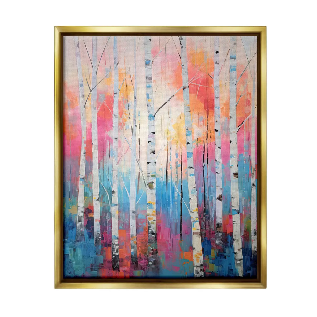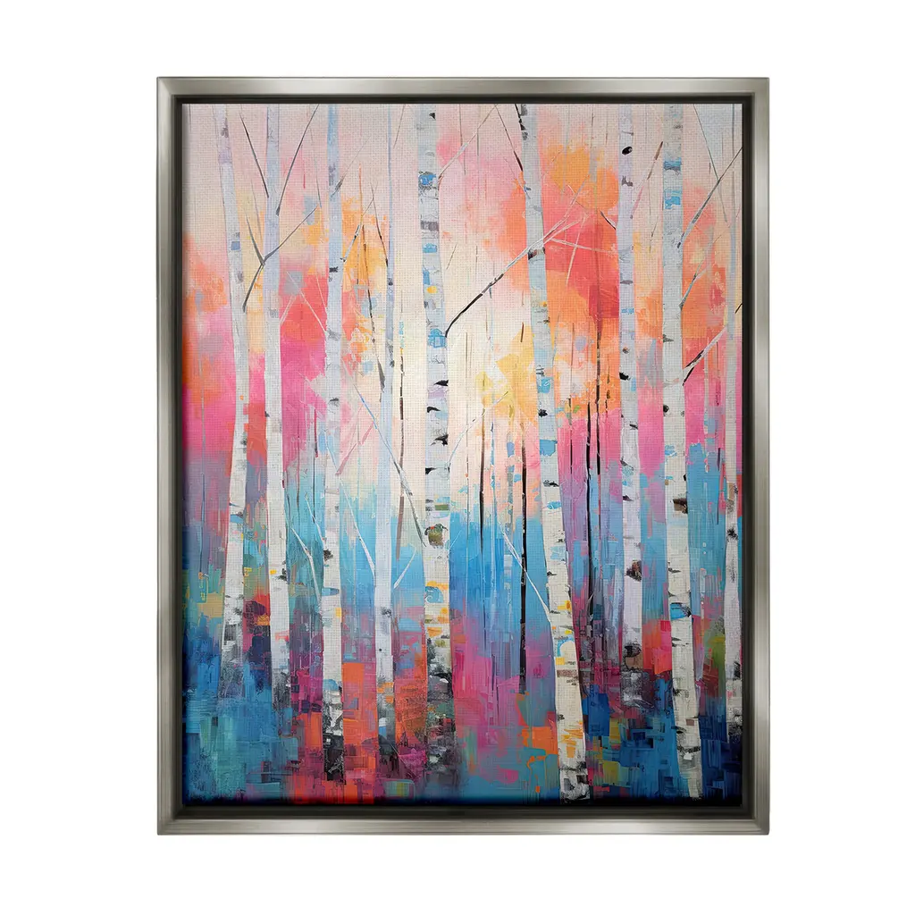 Elevate your home or office to the next level with Stupell Framed Floating Canvas Wall Art. Our premium hand-stretched canvas is mounted securely into a sturdy lightweight frame. The museum-style gap between the wrapped canvas and the box frame gives the illusion of floating artwork. Stupell Wall Art is made in the USA.Features: Dimensions: 17 x 1.7 x 21 Frame, 16 x 1.5 x 20 Canvas ArtFloating Frame Canvas Products are available in sizes 17"x21" and 25"x31". All Floating Frame Canvas Products have a 1.7" Depth.Wall Art is Ready to Hang with Hardware Free Hanging. No Installation required. For Easy Set Up Lean or Layer Artwork on Shelf or Against Wall. Artwork is Permently Fixed into the Frame.Our elevated 1.7" Thick Floating Frame is the perfect complement to our canvas style Wall Art. We use only the highest quality inks in house with industry leading printing solutions. Canvas is hand stretched over a durable wood foundation and then mounted securly into a Modern Box Frame. Made in the USA.Artwork Relates To: Modern, Plant, Tree, Birch, Nature, Woodland, Forest, AbstractDesign by Gina Kelly