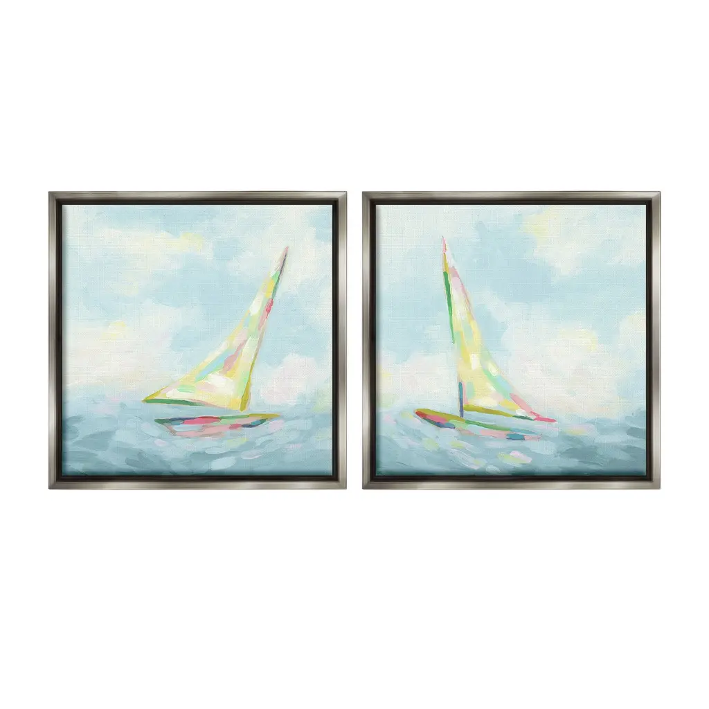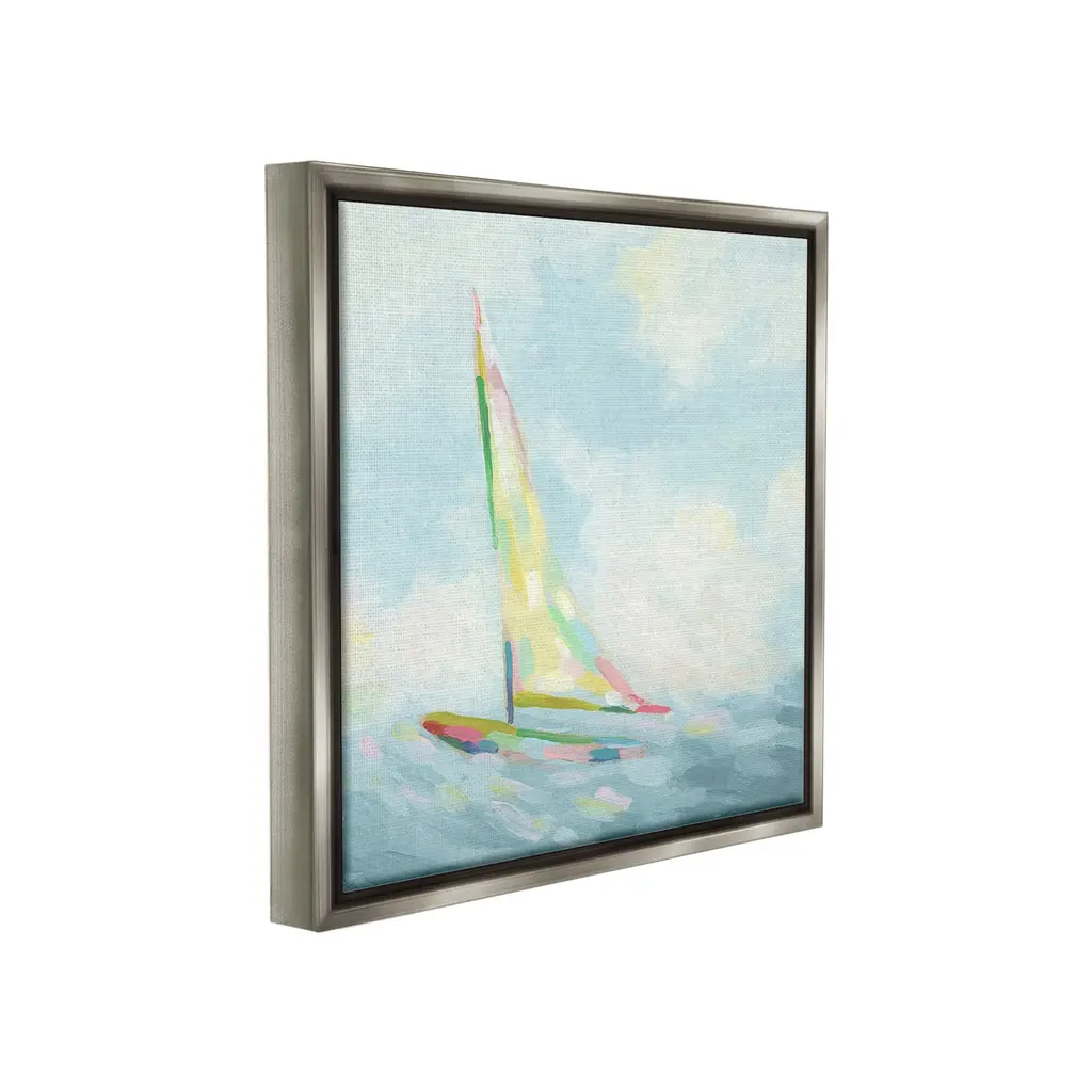 Elevate your home or office to the next level with Stupell Framed Floating Canvas Wall Art. Our premium hand-stretched canvas is mounted securely into a sturdy lightweight frame. The museum-style gap between the wrapped canvas and the box frame gives the illusion of floating artwork. Stupell Wall Art is made in the USA.Features: Dimensions: 18 x 1.7 x 18 Frame, 17 x 1.5 x 17 Canvas ArtFloating Frame Canvas Products are available in sizes 18"x18" and 25"x25". All Floating Frame Canvas Products have a 1.7" Depth.Wall Art is Ready to Hang with Hardware Free Hanging. No Installation required. For Easy Set Up Lean or Layer Artwork on Shelf or Against Wall. Artwork is Permently Fixed into the Frame.Our elevated 1.7" Thick Floating Frame is the perfect complement to our canvas style Wall Art. We use only the highest quality inks in house with industry leading printing solutions. Canvas is hand stretched over a durable wood foundation and then mounted securly into a Modern Box Frame. Made in the USA.Artwork Relates To: Boat, Sailboat, Watercraft, Nautical, Maritime, Abstract, ModernDesign by June Erica Vess