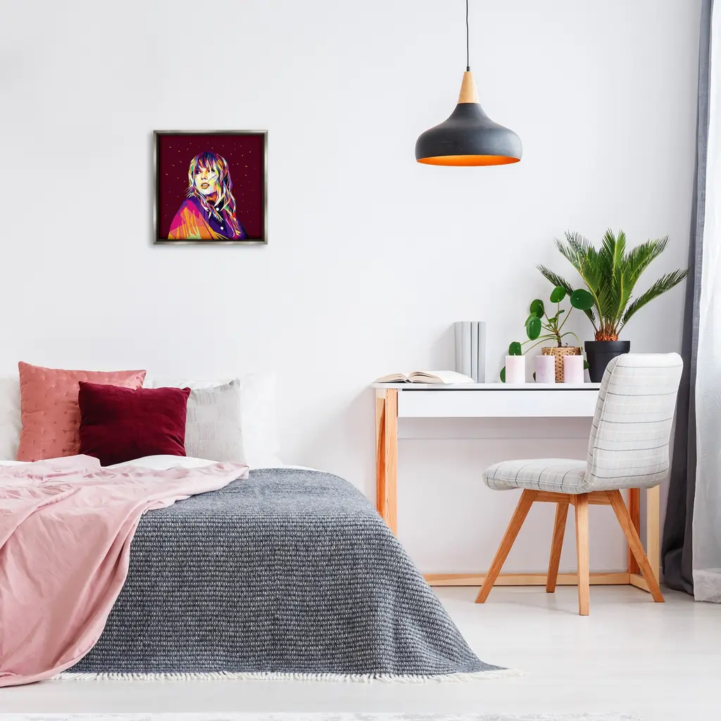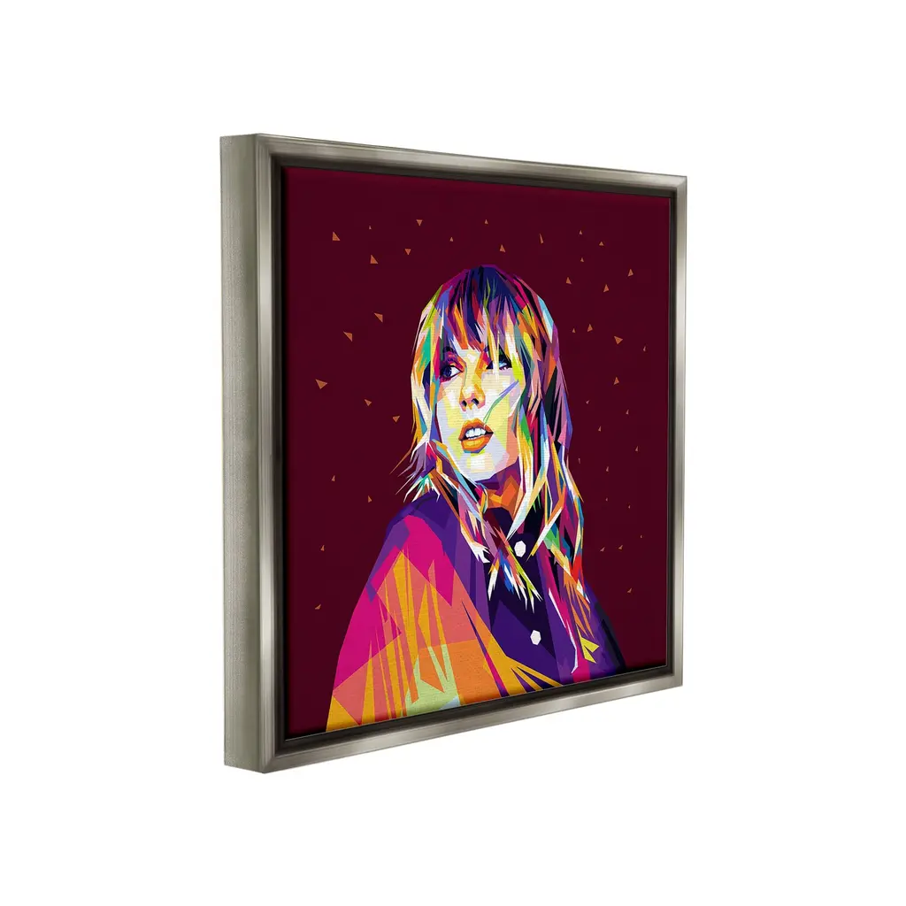 Elevate your home or office to the next level with Stupell Framed Floating Canvas Wall Art. Our premium hand-stretched canvas is mounted securely into a sturdy lightweight frame. The museum-style gap between the wrapped canvas and the box frame gives the illusion of floating artwork. Stupell Wall Art is made in the USA.Features: Dimensions: 18 x 1.7 x 18 Frame, 17 x 1.5 x 17 Canvas ArtFloating Frame Canvas Products are available in sizes 18"x18" and 25"x25". All Floating Frame Canvas Products have a 1.7" Depth.Wall Art is Ready to Hang with Hardware Free Hanging. No Installation required. For Easy Set Up Lean or Layer Artwork on Shelf or Against Wall. Artwork is Permently Fixed into the Frame.Our elevated 1.7" Thick Floating Frame is the perfect complement to our canvas style Wall Art. We use only the highest quality inks in house with industry leading printing solutions. Canvas is hand stretched over a durable wood foundation and then mounted securly into a Modern Box Frame. Made in the USA.Artwork Relates To: Modern, Face, Person, Portrait, Woman, Musician, Pop Culture, MusicDesign by Birch&Ink