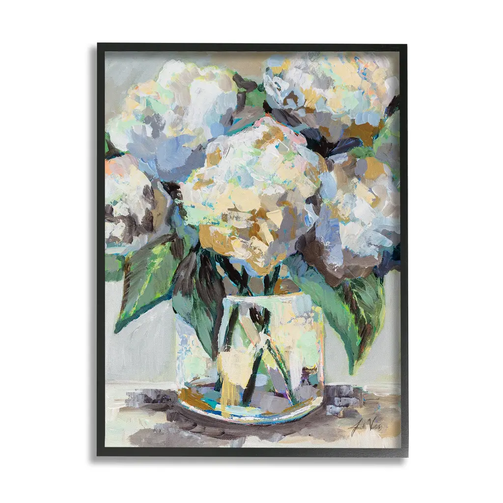Stupell Modern Hydrangea Flower Bouquet Abstract Floral Painting Framed Wall Art - White - 11 X 14 - Black