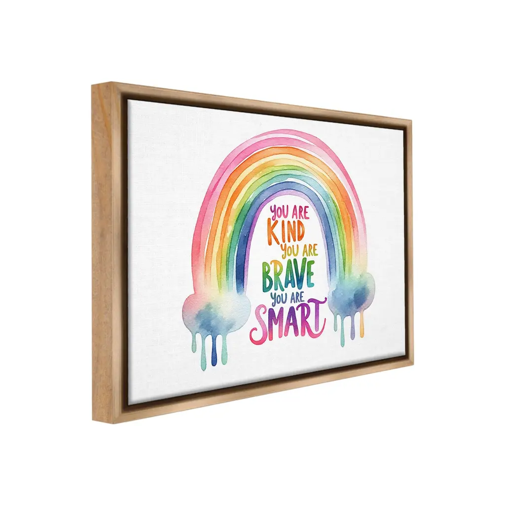 Elevate your home or office to the next level with Stupell Framed Floating Canvas Wall Art. Our premium hand-stretched canvas is mounted securely into a sturdy lightweight frame. The museum-style gap between the wrapped canvas and the box frame gives the illusion of floating artwork. Stupell Wall Art is made in the USA.Features: Dimensions: 21 x 1.7 x 17 Frame, 20 x 1.5 x 16 Canvas ArtFloating Frame Canvas Products are available in sizes 21"x17" and 31"x25". All Floating Frame Canvas Products have a 1.7" Depth.Wall Art is Ready to Hang with Hardware Free Hanging. No Installation required. For Easy Set Up Lean or Layer Artwork on Shelf or Against Wall. Artwork is Permently Fixed into the Frame.Our elevated 1.7" Thick Floating Frame is the perfect complement to our canvas style Wall Art. We use only the highest quality inks in house with industry leading printing solutions. Canvas is hand stretched over a durable wood foundation and then mounted securly into a Modern Box Frame. Made in the USA.Artwork Relates To: Landscape, Nature, Cloud, Rainbow, Inspirational, Phrase, Heart, You Are Kind, You Are Brave, You Are SmartDesign by Amanda Greenwood
