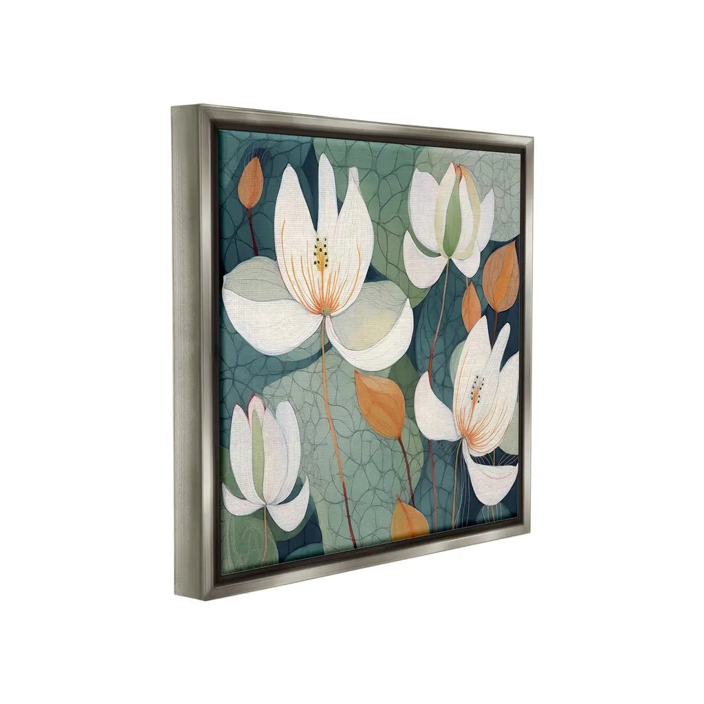 Elevate your home or office to the next level with Stupell Framed Floating Canvas Wall Art. Our premium hand-stretched canvas is mounted securely into a sturdy lightweight frame. The museum-style gap between the wrapped canvas and the box frame gives the illusion of floating artwork. Stupell Wall Art is made in the USA.Features: Dimensions: 18 x 1.7 x 18 Frame, 17 x 1.5 x 17 Canvas ArtFloating Frame Canvas Products are available in sizes 18"x18" and 25"x25". All Floating Frame Canvas Products have a 1.7" Depth.Wall Art is Ready to Hang with Hardware Free Hanging. No Installation required. For Easy Set Up Lean or Layer Artwork on Shelf or Against Wall. Artwork is Permently Fixed into the Frame.Our elevated 1.7" Thick Floating Frame is the perfect complement to our canvas style Wall Art. We use only the highest quality inks in house with industry leading printing solutions. Canvas is hand stretched over a durable wood foundation and then mounted securly into a Modern Box Frame. Made in the USA.Artwork Relates To: Floral, Pattern, Flower, Petal, Plant, Blossom, Bloom, Modern, Abstract, GeometricDesign by Lazar Studio