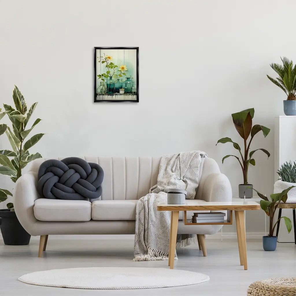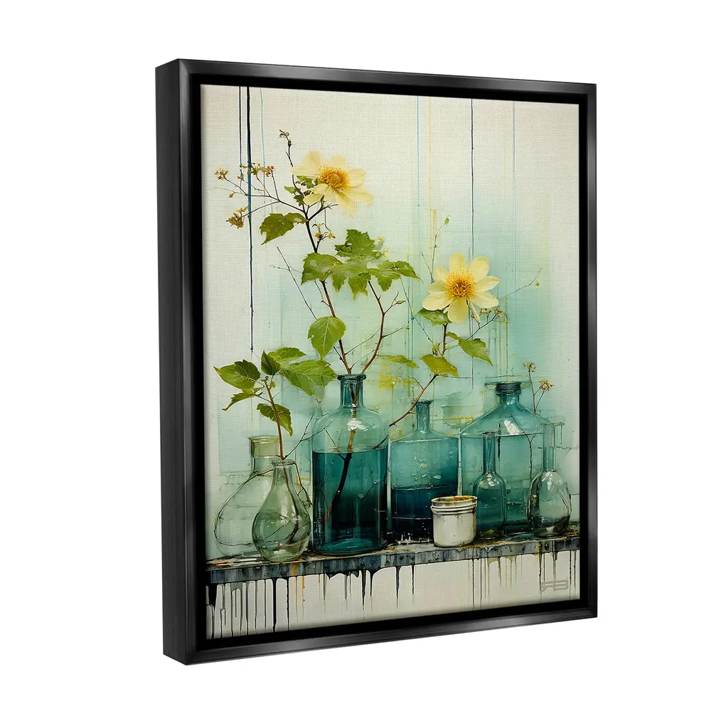 Elevate your home or office to the next level with Stupell Framed Floating Canvas Wall Art. Our premium hand-stretched canvas is mounted securely into a sturdy lightweight frame. The museum-style gap between the wrapped canvas and the box frame gives the illusion of floating artwork. Stupell Wall Art is made in the USA.Features: Dimensions: 17 x 1.7 x 21 Frame, 16 x 1.5 x 20 Canvas ArtFloating Frame Canvas Products are available in sizes 17"x21" and 25"x31". All Floating Frame Canvas Products have a 1.7" Depth.Wall Art is Ready to Hang with Hardware Free Hanging. No Installation required. For Easy Set Up Lean or Layer Artwork on Shelf or Against Wall. Artwork is Permently Fixed into the Frame.Our elevated 1.7" Thick Floating Frame is the perfect complement to our canvas style Wall Art. We use only the highest quality inks in house with industry leading printing solutions. Canvas is hand stretched over a durable wood foundation and then mounted securly into a Modern Box Frame. Made in the USA.Artwork Relates To: Flower, Plant, Bouquet, Vase, Floral, Still Life, Jar, Bottle, ModernDesign by RB