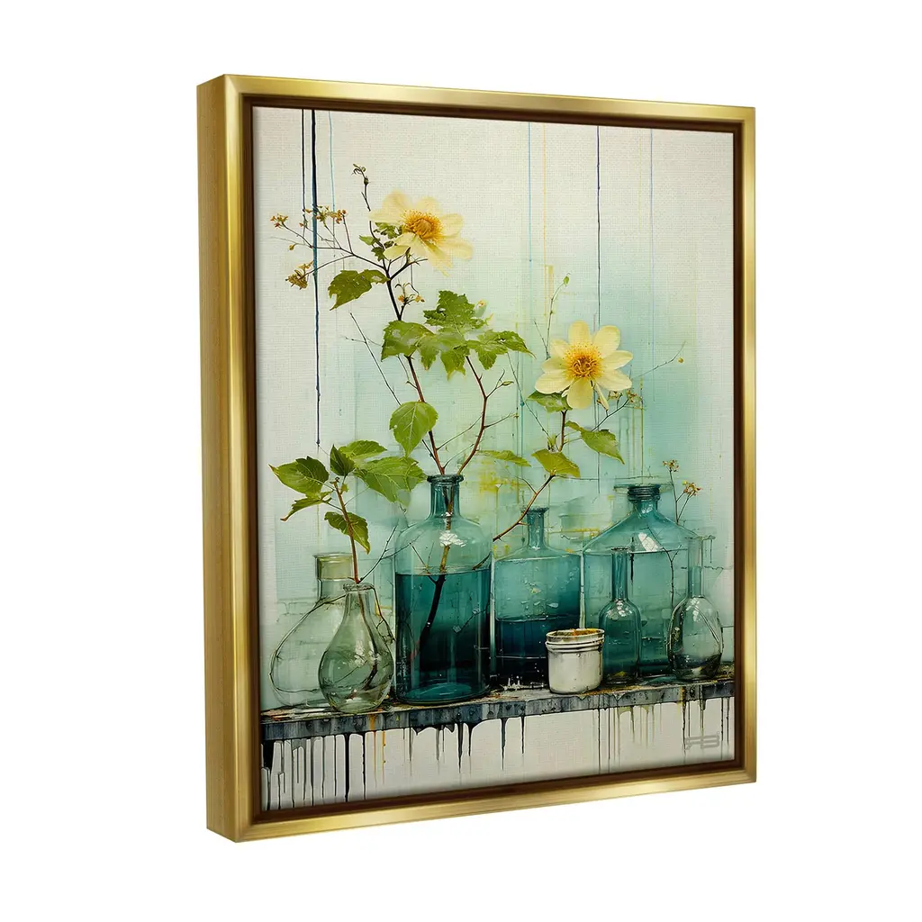 Elevate your home or office to the next level with Stupell Framed Floating Canvas Wall Art. Our premium hand-stretched canvas is mounted securely into a sturdy lightweight frame. The museum-style gap between the wrapped canvas and the box frame gives the illusion of floating artwork. Stupell Wall Art is made in the USA.Features: Dimensions: 17 x 1.7 x 21 Frame, 16 x 1.5 x 20 Canvas ArtFloating Frame Canvas Products are available in sizes 17"x21" and 25"x31". All Floating Frame Canvas Products have a 1.7" Depth.Wall Art is Ready to Hang with Hardware Free Hanging. No Installation required. For Easy Set Up Lean or Layer Artwork on Shelf or Against Wall. Artwork is Permently Fixed into the Frame.Our elevated 1.7" Thick Floating Frame is the perfect complement to our canvas style Wall Art. We use only the highest quality inks in house with industry leading printing solutions. Canvas is hand stretched over a durable wood foundation and then mounted securly into a Modern Box Frame. Made in the USA.Artwork Relates To: Flower, Plant, Bouquet, Vase, Floral, Still Life, Jar, Bottle, ModernDesign by RB