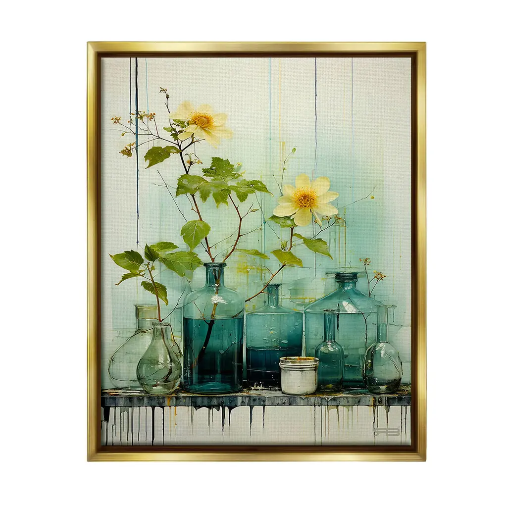 Elevate your home or office to the next level with Stupell Framed Floating Canvas Wall Art. Our premium hand-stretched canvas is mounted securely into a sturdy lightweight frame. The museum-style gap between the wrapped canvas and the box frame gives the illusion of floating artwork. Stupell Wall Art is made in the USA.Features: Dimensions: 17 x 1.7 x 21 Frame, 16 x 1.5 x 20 Canvas ArtFloating Frame Canvas Products are available in sizes 17"x21" and 25"x31". All Floating Frame Canvas Products have a 1.7" Depth.Wall Art is Ready to Hang with Hardware Free Hanging. No Installation required. For Easy Set Up Lean or Layer Artwork on Shelf or Against Wall. Artwork is Permently Fixed into the Frame.Our elevated 1.7" Thick Floating Frame is the perfect complement to our canvas style Wall Art. We use only the highest quality inks in house with industry leading printing solutions. Canvas is hand stretched over a durable wood foundation and then mounted securly into a Modern Box Frame. Made in the USA.Artwork Relates To: Flower, Plant, Bouquet, Vase, Floral, Still Life, Jar, Bottle, ModernDesign by RB