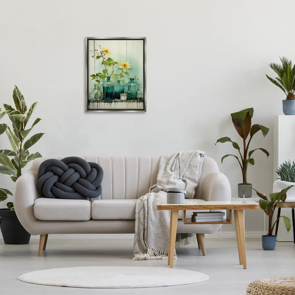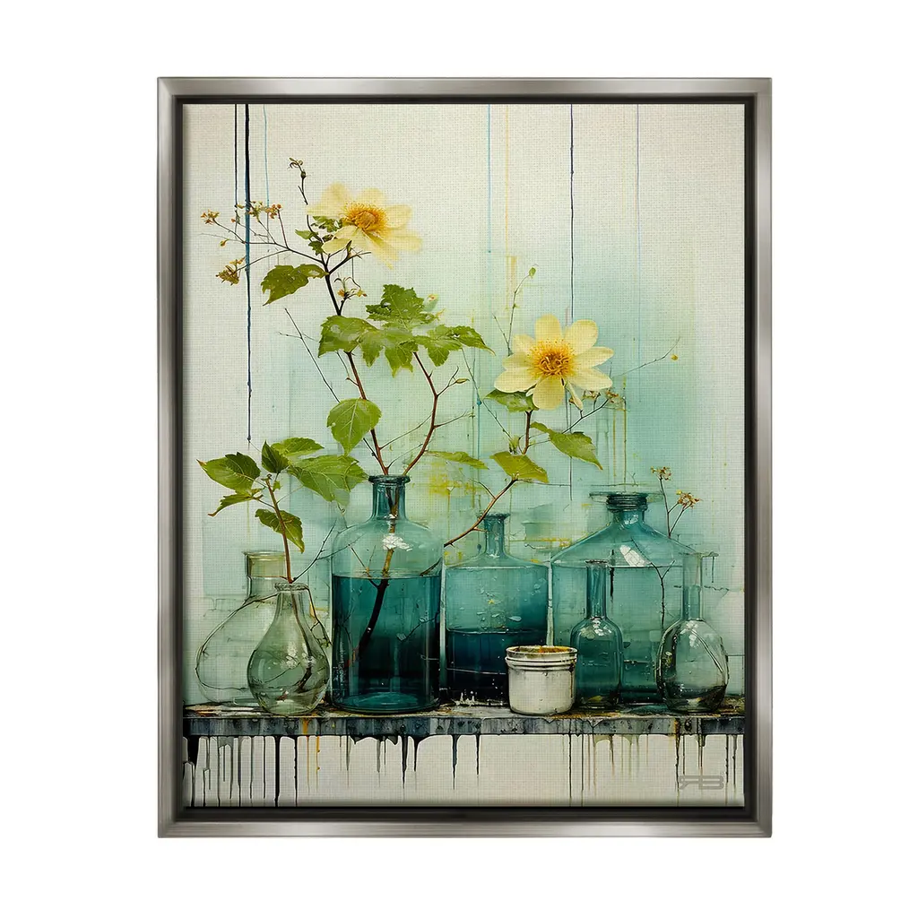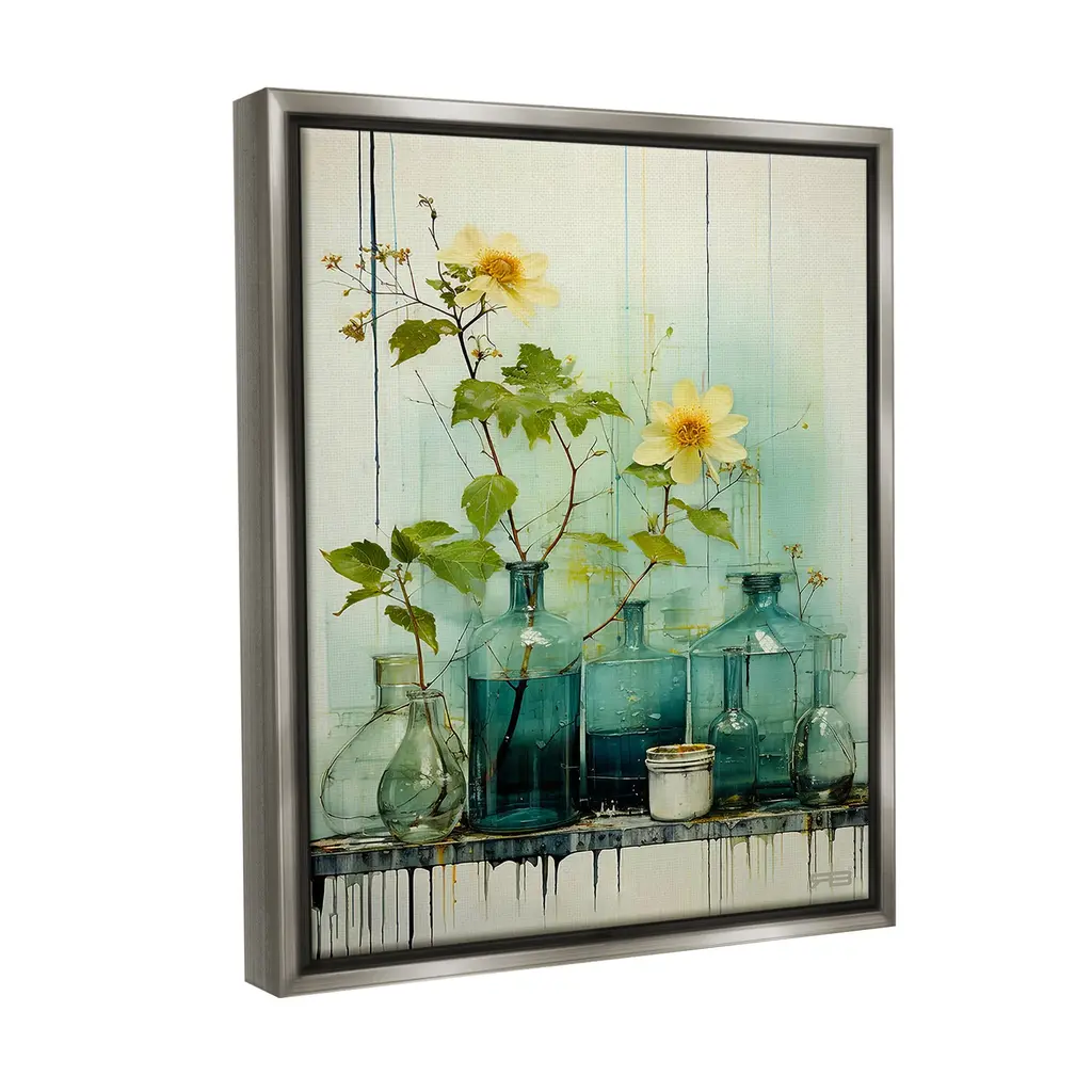 Elevate your home or office to the next level with Stupell Framed Floating Canvas Wall Art. Our premium hand-stretched canvas is mounted securely into a sturdy lightweight frame. The museum-style gap between the wrapped canvas and the box frame gives the illusion of floating artwork. Stupell Wall Art is made in the USA.Features: Dimensions: 17 x 1.7 x 21 Frame, 16 x 1.5 x 20 Canvas ArtFloating Frame Canvas Products are available in sizes 17"x21" and 25"x31". All Floating Frame Canvas Products have a 1.7" Depth.Wall Art is Ready to Hang with Hardware Free Hanging. No Installation required. For Easy Set Up Lean or Layer Artwork on Shelf or Against Wall. Artwork is Permently Fixed into the Frame.Our elevated 1.7" Thick Floating Frame is the perfect complement to our canvas style Wall Art. We use only the highest quality inks in house with industry leading printing solutions. Canvas is hand stretched over a durable wood foundation and then mounted securly into a Modern Box Frame. Made in the USA.Artwork Relates To: Flower, Plant, Bouquet, Vase, Floral, Still Life, Jar, Bottle, ModernDesign by RB