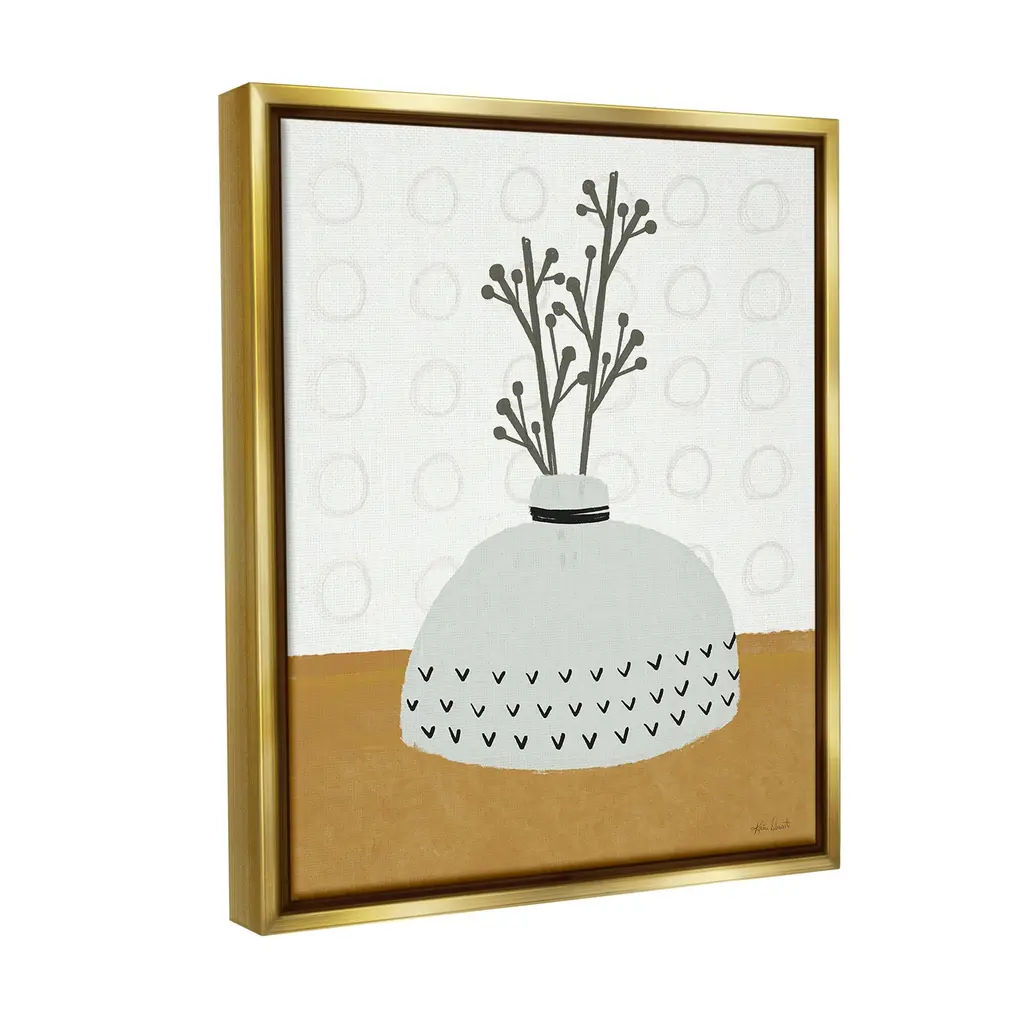 Elevate your home or office to the next level with Stupell Framed Floating Canvas Wall Art. Our premium hand-stretched canvas is mounted securely into a sturdy lightweight frame. The museum-style gap between the wrapped canvas and the box frame gives the illusion of floating artwork. Stupell Wall Art is made in the USA.Features: Dimensions: 17 x 1.7 x 21 Frame, 16 x 1.5 x 20 Canvas ArtFloating Frame Canvas Products are available in sizes 17"x21" and 25"x31". All Floating Frame Canvas Products have a 1.7" Depth.Wall Art is Ready to Hang with Hardware Free Hanging. No Installation required. For Easy Set Up Lean or Layer Artwork on Shelf or Against Wall. Artwork is Permently Fixed into the Frame.Our elevated 1.7" Thick Floating Frame is the perfect complement to our canvas style Wall Art. We use only the highest quality inks in house with industry leading printing solutions. Canvas is hand stretched over a durable wood foundation and then mounted securly into a Modern Box Frame. Made in the USA.Artwork Relates To: Plant, Pottery, Vase, Botanical, Plant, Leaf, Cottage, Modern, Abstract, PatternDesign by Katie Doucette