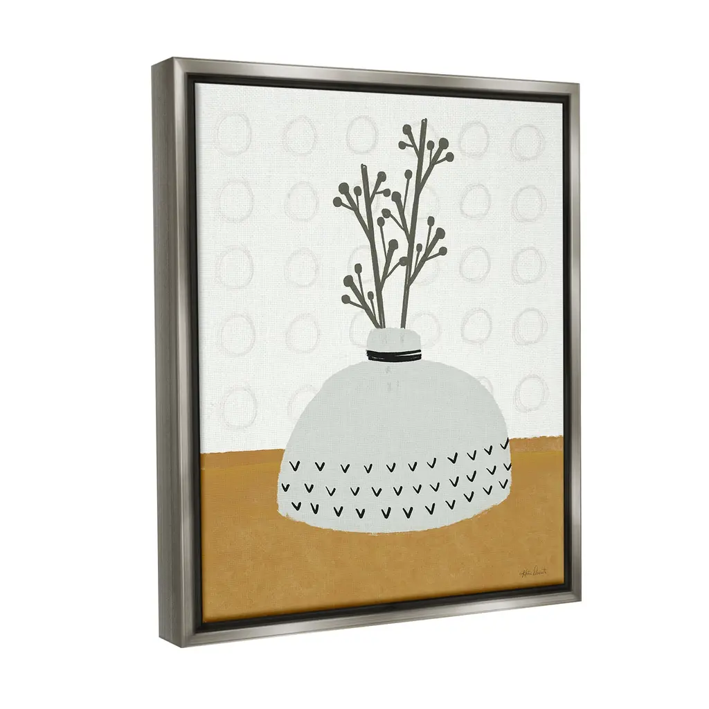 Elevate your home or office to the next level with Stupell Framed Floating Canvas Wall Art. Our premium hand-stretched canvas is mounted securely into a sturdy lightweight frame. The museum-style gap between the wrapped canvas and the box frame gives the illusion of floating artwork. Stupell Wall Art is made in the USA.Features: Dimensions: 17 x 1.7 x 21 Frame, 16 x 1.5 x 20 Canvas ArtFloating Frame Canvas Products are available in sizes 17"x21" and 25"x31". All Floating Frame Canvas Products have a 1.7" Depth.Wall Art is Ready to Hang with Hardware Free Hanging. No Installation required. For Easy Set Up Lean or Layer Artwork on Shelf or Against Wall. Artwork is Permently Fixed into the Frame.Our elevated 1.7" Thick Floating Frame is the perfect complement to our canvas style Wall Art. We use only the highest quality inks in house with industry leading printing solutions. Canvas is hand stretched over a durable wood foundation and then mounted securly into a Modern Box Frame. Made in the USA.Artwork Relates To: Plant, Pottery, Vase, Botanical, Plant, Leaf, Cottage, Modern, Abstract, PatternDesign by Katie Doucette