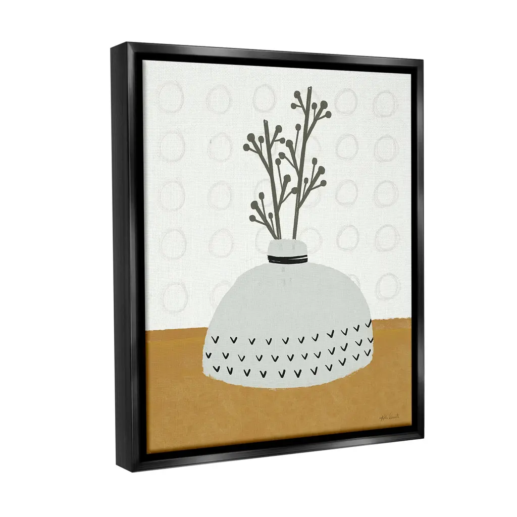 Elevate your home or office to the next level with Stupell Framed Floating Canvas Wall Art. Our premium hand-stretched canvas is mounted securely into a sturdy lightweight frame. The museum-style gap between the wrapped canvas and the box frame gives the illusion of floating artwork. Stupell Wall Art is made in the USA.Features: Dimensions: 17 x 1.7 x 21 Frame, 16 x 1.5 x 20 Canvas ArtFloating Frame Canvas Products are available in sizes 17"x21" and 25"x31". All Floating Frame Canvas Products have a 1.7" Depth.Wall Art is Ready to Hang with Hardware Free Hanging. No Installation required. For Easy Set Up Lean or Layer Artwork on Shelf or Against Wall. Artwork is Permently Fixed into the Frame.Our elevated 1.7" Thick Floating Frame is the perfect complement to our canvas style Wall Art. We use only the highest quality inks in house with industry leading printing solutions. Canvas is hand stretched over a durable wood foundation and then mounted securly into a Modern Box Frame. Made in the USA.Artwork Relates To: Plant, Pottery, Vase, Botanical, Plant, Leaf, Cottage, Modern, Abstract, PatternDesign by Katie Doucette