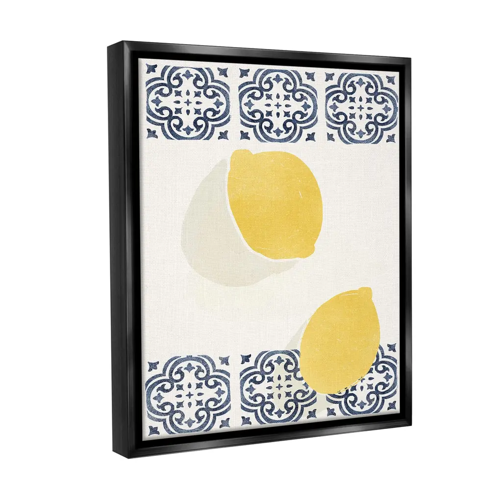 Elevate your home or office to the next level with Stupell Framed Floating Canvas Wall Art. Our premium hand-stretched canvas is mounted securely into a sturdy lightweight frame. The museum-style gap between the wrapped canvas and the box frame gives the illusion of floating artwork. Stupell Wall Art is made in the USA.Features: Dimensions: 17 x 1.7 x 21 Frame, 16 x 1.5 x 20 Canvas ArtFloating Frame Canvas Products are available in sizes 17"x21" and 25"x31". All Floating Frame Canvas Products have a 1.7" Depth.Wall Art is Ready to Hang with Hardware Free Hanging. No Installation required. For Easy Set Up Lean or Layer Artwork on Shelf or Against Wall. Artwork is Permently Fixed into the Frame.Our elevated 1.7" Thick Floating Frame is the perfect complement to our canvas style Wall Art. We use only the highest quality inks in house with industry leading printing solutions. Canvas is hand stretched over a durable wood foundation and then mounted securly into a Modern Box Frame. Made in the USA.Artwork Relates To: Citrus Fruit, Food, Fruit, Lemon, Plant, Produce, Pattern, Geometric, Modern, MinimalDesign by Yuyu Pont