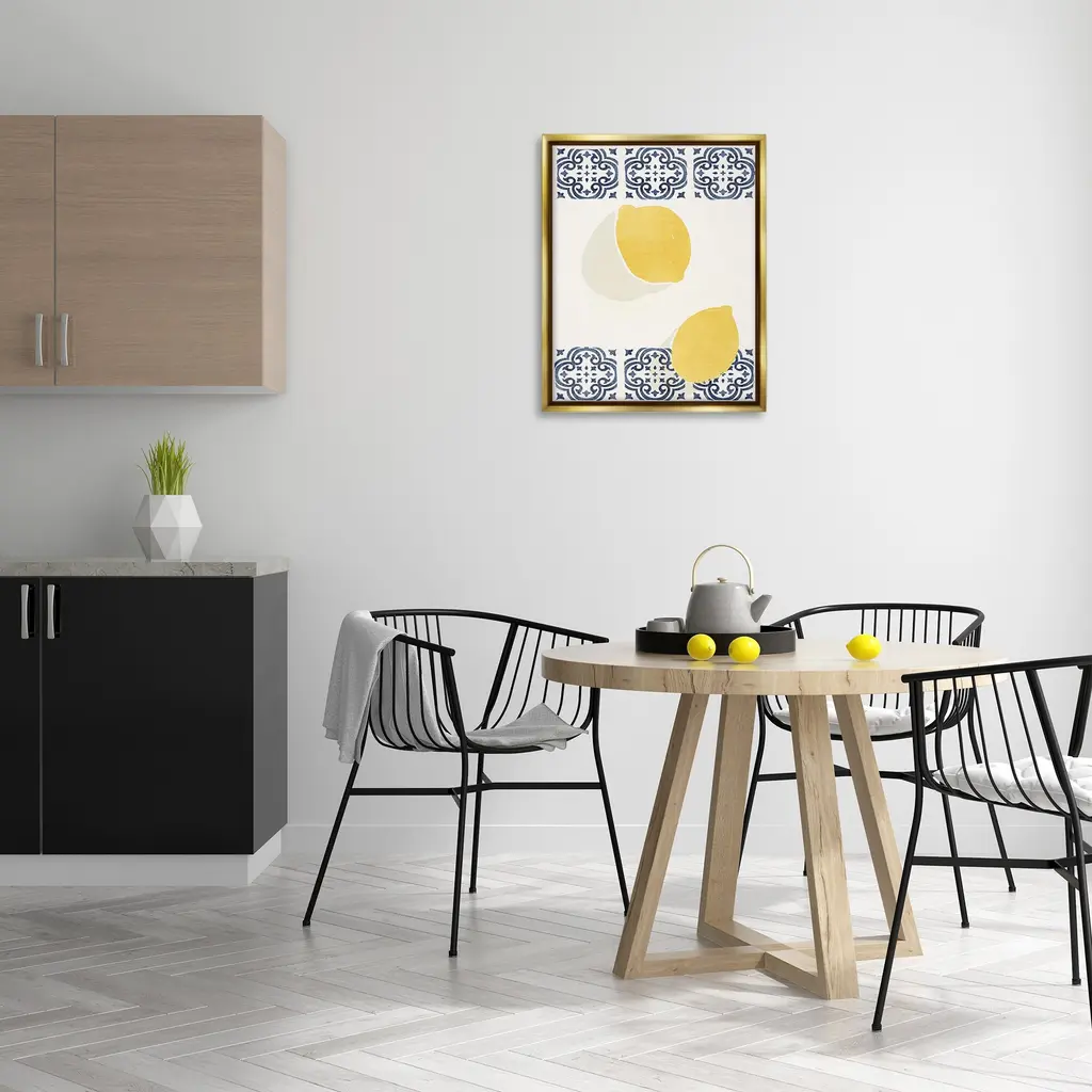 Elevate your home or office to the next level with Stupell Framed Floating Canvas Wall Art. Our premium hand-stretched canvas is mounted securely into a sturdy lightweight frame. The museum-style gap between the wrapped canvas and the box frame gives the illusion of floating artwork. Stupell Wall Art is made in the USA.Features: Dimensions: 17 x 1.7 x 21 Frame, 16 x 1.5 x 20 Canvas ArtFloating Frame Canvas Products are available in sizes 17"x21" and 25"x31". All Floating Frame Canvas Products have a 1.7" Depth.Wall Art is Ready to Hang with Hardware Free Hanging. No Installation required. For Easy Set Up Lean or Layer Artwork on Shelf or Against Wall. Artwork is Permently Fixed into the Frame.Our elevated 1.7" Thick Floating Frame is the perfect complement to our canvas style Wall Art. We use only the highest quality inks in house with industry leading printing solutions. Canvas is hand stretched over a durable wood foundation and then mounted securly into a Modern Box Frame. Made in the USA.Artwork Relates To: Citrus Fruit, Food, Fruit, Lemon, Plant, Produce, Pattern, Geometric, Modern, MinimalDesign by Yuyu Pont