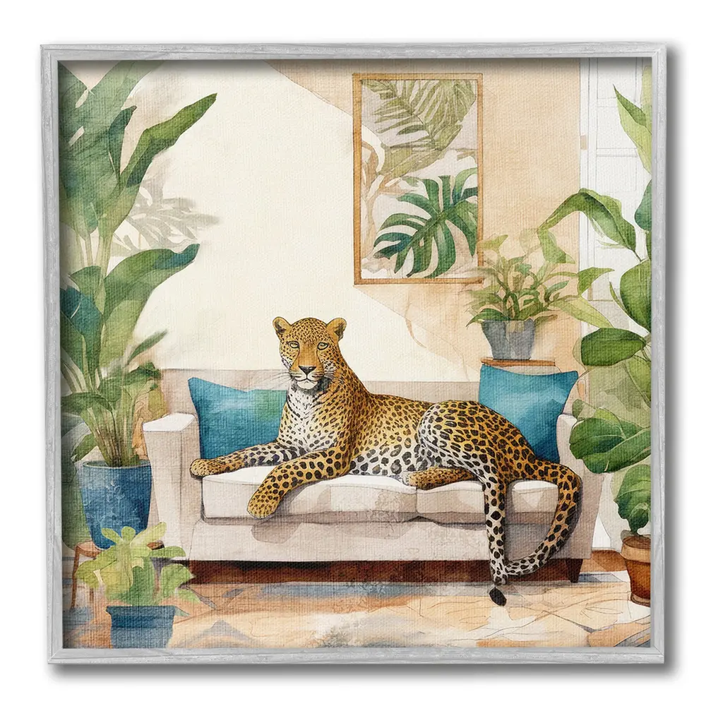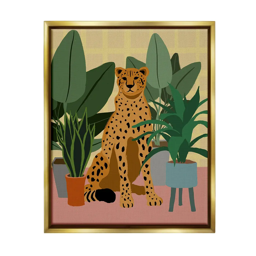 Elevate your home or office to the next level with Stupell Framed Floating Canvas Wall Art. Our premium hand-stretched canvas is mounted securely into a sturdy lightweight frame. The museum-style gap between the wrapped canvas and the box frame gives the illusion of floating artwork. Stupell Wall Art is made in the USA.Features: Dimensions: 17 x 1.7 x 21 Frame, 16 x 1.5 x 20 Canvas ArtFloating Frame Canvas Products are available in sizes 17"x21" and 25"x31". All Floating Frame Canvas Products have a 1.7" Depth.Wall Art is Ready to Hang with Hardware Free Hanging. No Installation required. For Easy Set Up Lean or Layer Artwork on Shelf or Against Wall. Artwork is Permently Fixed into the Frame.Our elevated 1.7" Thick Floating Frame is the perfect complement to our canvas style Wall Art. We use only the highest quality inks in house with industry leading printing solutions. Canvas is hand stretched over a durable wood foundation and then mounted securly into a Modern Box Frame. Made in the USA.Artwork Relates To: Animal, Cheetah, Leopard, Mammal, Wildlife, Plant, Potted Plant, Botanical, Modern, Abstract, PatternDesign by Elizabeth Medley
