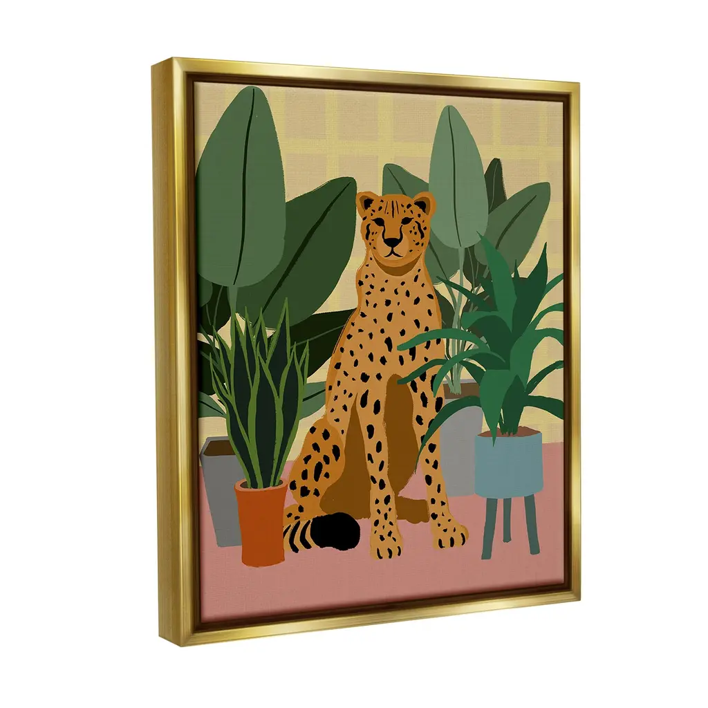 Elevate your home or office to the next level with Stupell Framed Floating Canvas Wall Art. Our premium hand-stretched canvas is mounted securely into a sturdy lightweight frame. The museum-style gap between the wrapped canvas and the box frame gives the illusion of floating artwork. Stupell Wall Art is made in the USA.Features: Dimensions: 17 x 1.7 x 21 Frame, 16 x 1.5 x 20 Canvas ArtFloating Frame Canvas Products are available in sizes 17"x21" and 25"x31". All Floating Frame Canvas Products have a 1.7" Depth.Wall Art is Ready to Hang with Hardware Free Hanging. No Installation required. For Easy Set Up Lean or Layer Artwork on Shelf or Against Wall. Artwork is Permently Fixed into the Frame.Our elevated 1.7" Thick Floating Frame is the perfect complement to our canvas style Wall Art. We use only the highest quality inks in house with industry leading printing solutions. Canvas is hand stretched over a durable wood foundation and then mounted securly into a Modern Box Frame. Made in the USA.Artwork Relates To: Animal, Cheetah, Leopard, Mammal, Wildlife, Plant, Potted Plant, Botanical, Modern, Abstract, PatternDesign by Elizabeth Medley