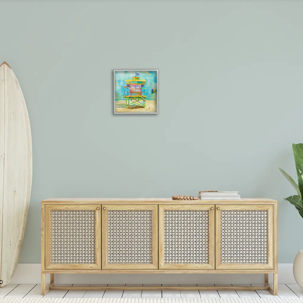 Add dimension to any room with our textured Framed Giclee Artwork. Our framed artwork is securely mounted into a 1.5-inch thick wood grain frame and ready to hang. Frames are available in three alluring styles: black, gray farmhouse and white. In addition, you should check out our oversized options if you want a statement piece. Stupell Wall Art is made in the USA.Features: Dimensions: 12 x 1.5 x 12 FramedFramed Giclee Product Sizes Include 12"x12", 17"x17", and 24"x24". Framed Giclee Products have a 1.5" Depth. Wall Art is Ready to Hang with Hardware Free Hanging. No installation required. For Easy Set Up Lean or Layer Artwork on Shelf or Against Wall.Our giclée prints are carefully mounted on a durable MDF backing, and then perfectly finished in a 1.5 inch thick woodgrain frame. Mounted frame colors include black, gray farmhouse and white. Made In USA.Artwork Relates To: Modern, Painting, Beach, Nautical, Summer, Tropical, Lifeguard Hut, Seagull, Bird, AbstractDesign by Liz Jardine