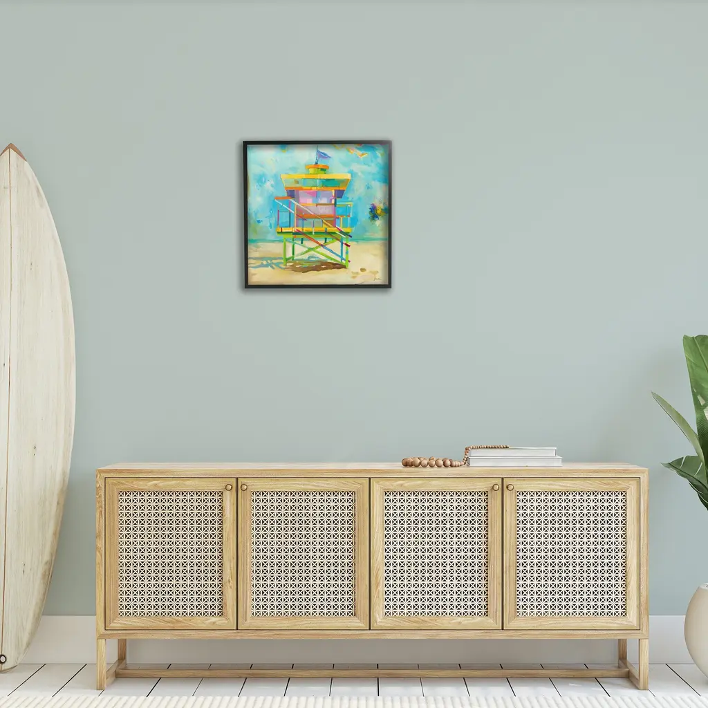 Add dimension to any room with our textured Framed Giclee Artwork. Our framed artwork is securely mounted into a 1.5-inch thick wood grain frame and ready to hang. Frames are available in three alluring styles: black, gray farmhouse and white. In addition, you should check out our oversized options if you want a statement piece. Stupell Wall Art is made in the USA.Features: Dimensions: 12 x 1.5 x 12 FramedFramed Giclee Product Sizes Include 12"x12", 17"x17", and 24"x24". Framed Giclee Products have a 1.5" Depth. Wall Art is Ready to Hang with Hardware Free Hanging. No installation required. For Easy Set Up Lean or Layer Artwork on Shelf or Against Wall.Our giclée prints are carefully mounted on a durable MDF backing, and then perfectly finished in a 1.5 inch thick woodgrain frame. Mounted frame colors include black, gray farmhouse and white. Made In USA.Artwork Relates To: Modern, Painting, Beach, Nautical, Summer, Tropical, Lifeguard Hut, Seagull, Bird, AbstractDesign by Liz Jardine