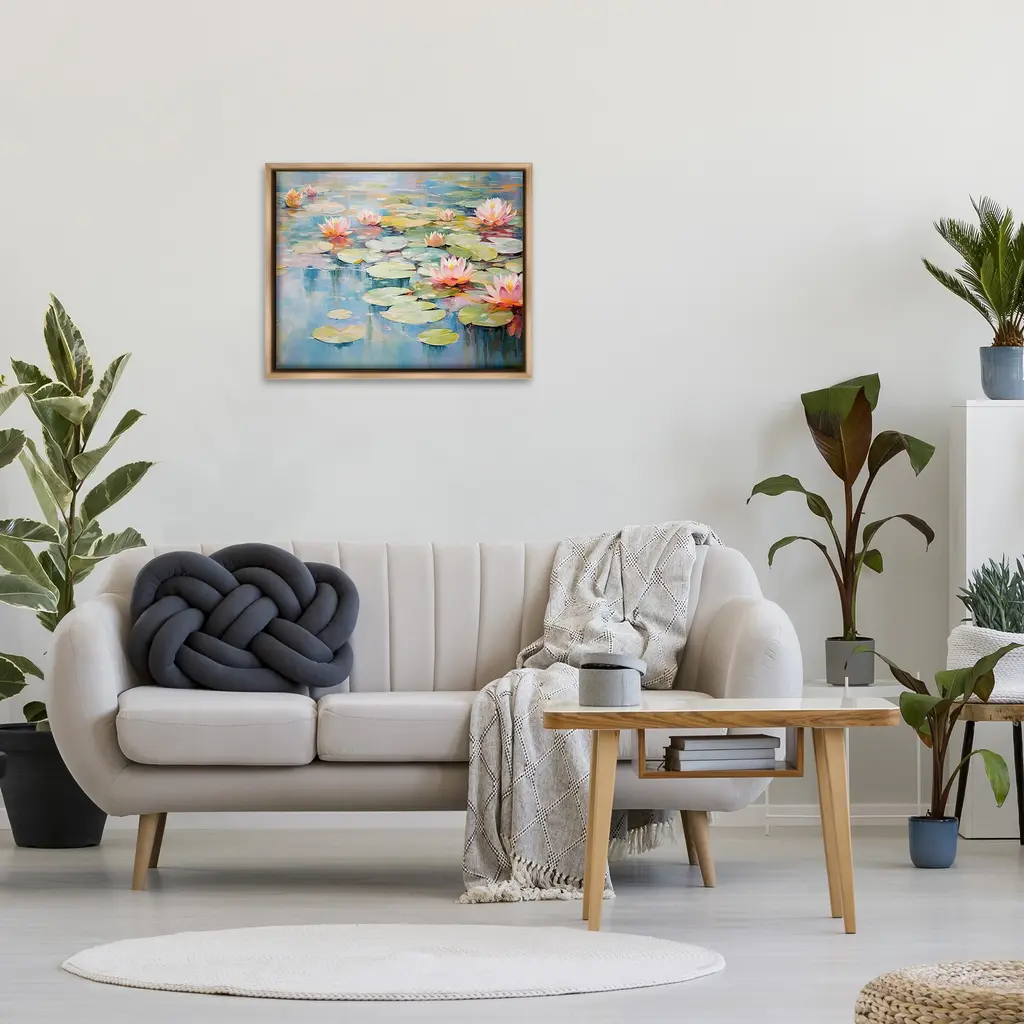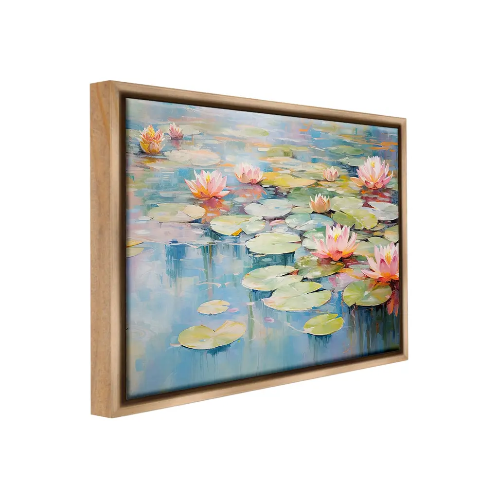 Elevate your home or office to the next level with Stupell Framed Floating Canvas Wall Art. Our premium hand-stretched canvas is mounted securely into a sturdy lightweight frame. The museum-style gap between the wrapped canvas and the box frame gives the illusion of floating artwork. Stupell Wall Art is made in the USA.Features: Dimensions: 21 x 1.7 x 17 Frame, 20 x 1.5 x 16 Canvas ArtFloating Frame Canvas Products are available in sizes 21"x17" and 31"x25". All Floating Frame Canvas Products have a 1.7" Depth.Wall Art is Ready to Hang with Hardware Free Hanging. No Installation required. For Easy Set Up Lean or Layer Artwork on Shelf or Against Wall. Artwork is Permently Fixed into the Frame.Our elevated 1.7" Thick Floating Frame is the perfect complement to our canvas style Wall Art. We use only the highest quality inks in house with industry leading printing solutions. Canvas is hand stretched over a durable wood foundation and then mounted securly into a Modern Box Frame. Made in the USA.Artwork Relates To: Flower, Plant, Nature, Pond, Water, Lily, Pond Lily, Petal, Lotus, Lily Pad, ModernDesign by Gina Kelly