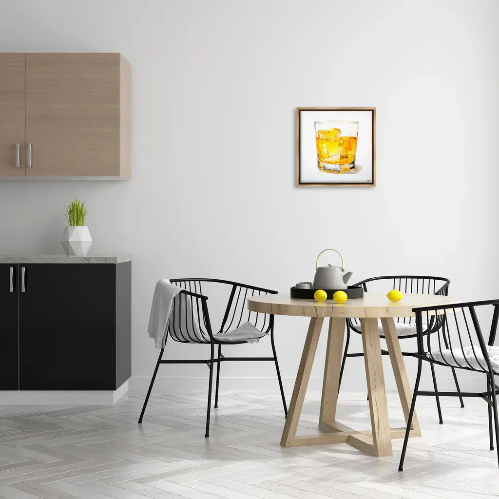 Elevate your home or office to the next level with Stupell Framed Floating Canvas Wall Art. Our premium hand-stretched canvas is mounted securely into a sturdy lightweight frame. The museum-style gap between the wrapped canvas and the box frame gives the illusion of floating artwork. Stupell Wall Art is made in the USA.Features: Dimensions: 18 x 1.7 x 18 Frame, 17 x 1.5 x 17 Canvas ArtFloating Frame Canvas Products are available in sizes 18"x18" and 25"x25". All Floating Frame Canvas Products have a 1.7" Depth.Wall Art is Ready to Hang with Hardware Free Hanging. No Installation required. For Easy Set Up Lean or Layer Artwork on Shelf or Against Wall. Artwork is Permently Fixed into the Frame.Our elevated 1.7" Thick Floating Frame is the perfect complement to our canvas style Wall Art. We use only the highest quality inks in house with industry leading printing solutions. Canvas is hand stretched over a durable wood foundation and then mounted securly into a Modern Box Frame. Made in the USA.Artwork Relates To: Glass, Alcohol, Beverage, Liquor, Whisky, Cocktail, MinimalDesign by RB
