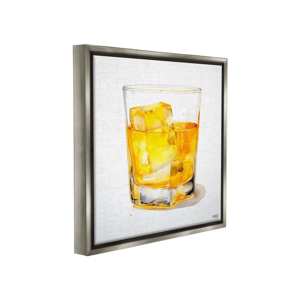 Elevate your home or office to the next level with Stupell Framed Floating Canvas Wall Art. Our premium hand-stretched canvas is mounted securely into a sturdy lightweight frame. The museum-style gap between the wrapped canvas and the box frame gives the illusion of floating artwork. Stupell Wall Art is made in the USA.Features: Dimensions: 18 x 1.7 x 18 Frame, 17 x 1.5 x 17 Canvas ArtFloating Frame Canvas Products are available in sizes 18"x18" and 25"x25". All Floating Frame Canvas Products have a 1.7" Depth.Wall Art is Ready to Hang with Hardware Free Hanging. No Installation required. For Easy Set Up Lean or Layer Artwork on Shelf or Against Wall. Artwork is Permently Fixed into the Frame.Our elevated 1.7" Thick Floating Frame is the perfect complement to our canvas style Wall Art. We use only the highest quality inks in house with industry leading printing solutions. Canvas is hand stretched over a durable wood foundation and then mounted securly into a Modern Box Frame. Made in the USA.Artwork Relates To: Glass, Alcohol, Beverage, Liquor, Whisky, Cocktail, MinimalDesign by RB