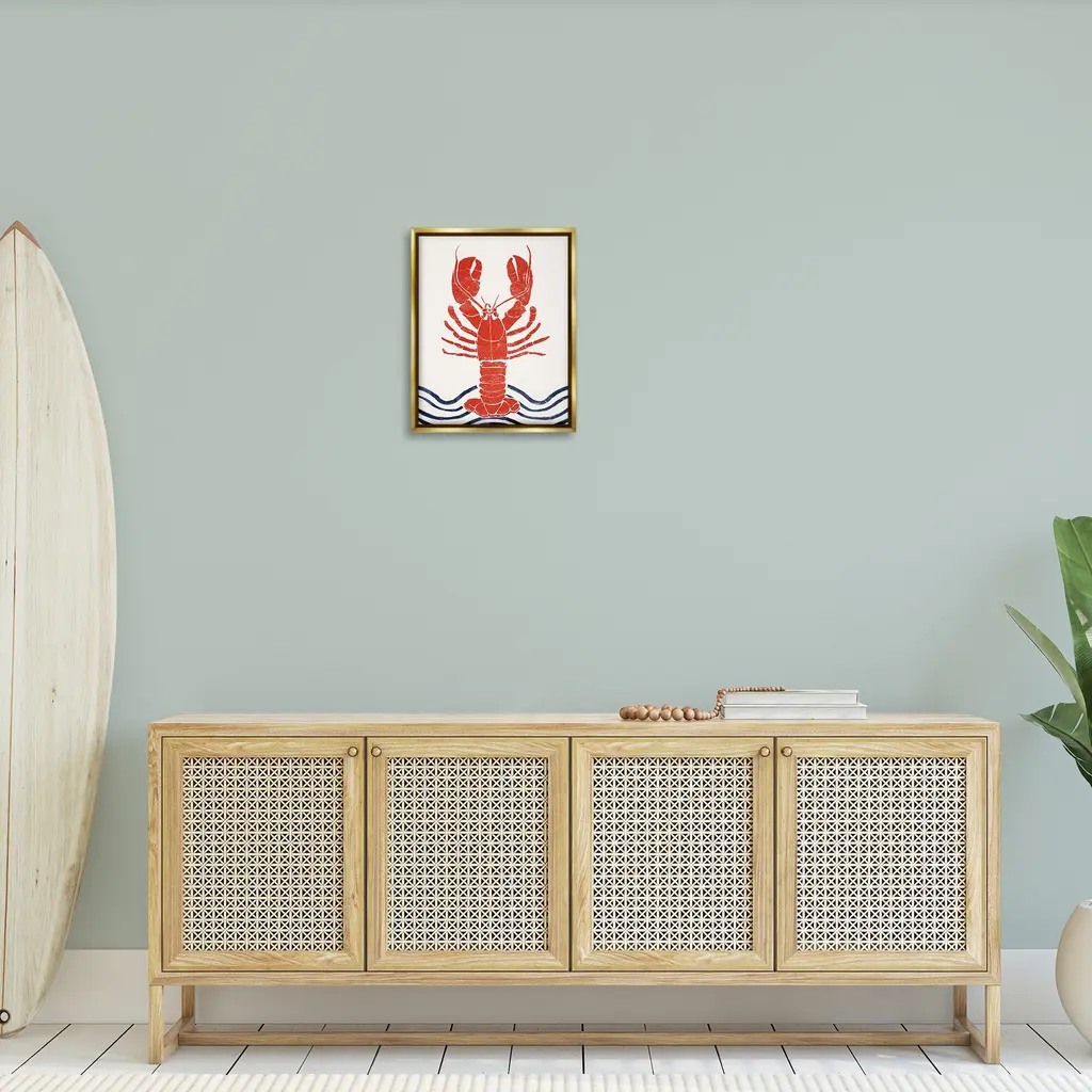 Stupell Modern Lobster With Waves Framed Floater Canvas Wall Art Design By Yuyu Pont - 17 X 21 - Gold