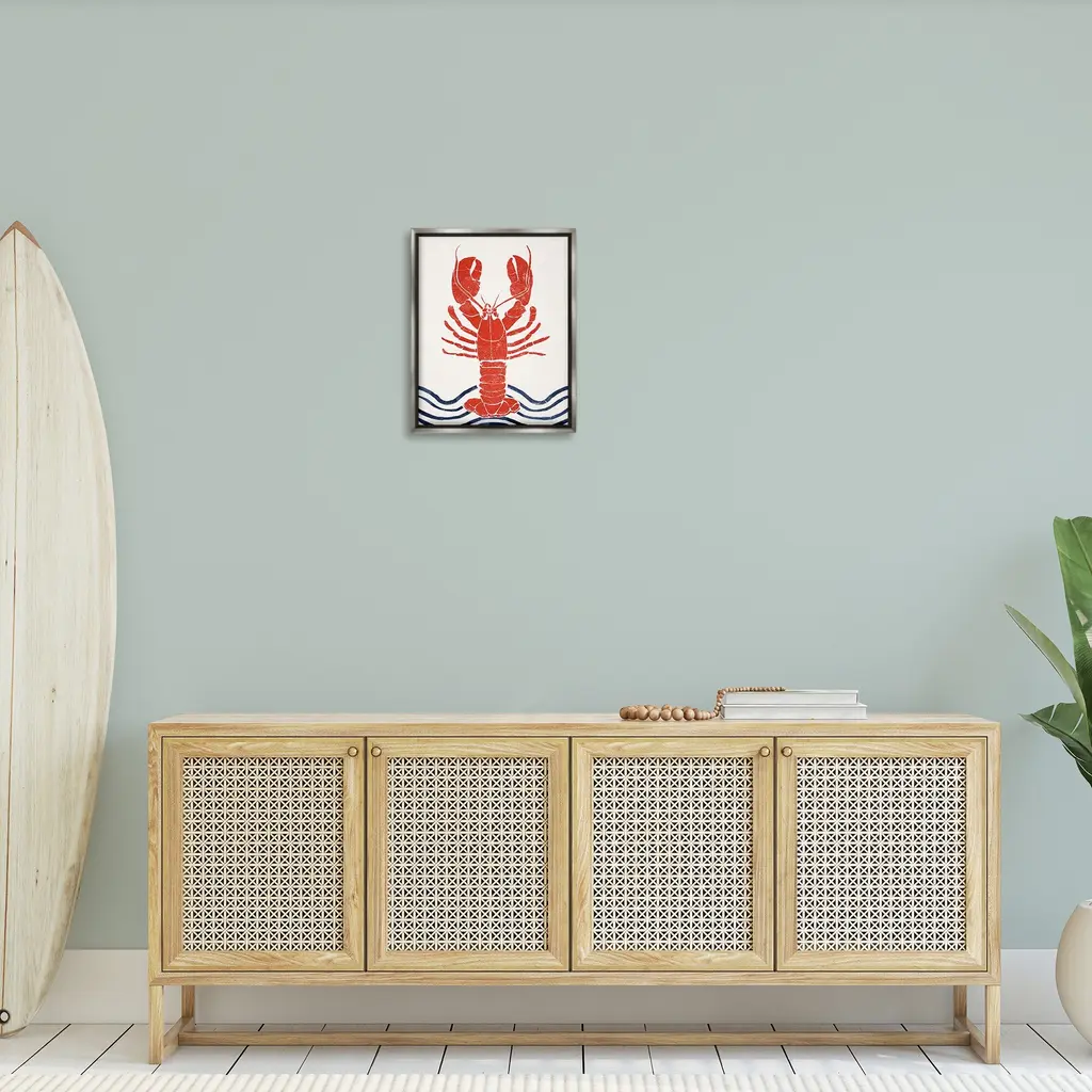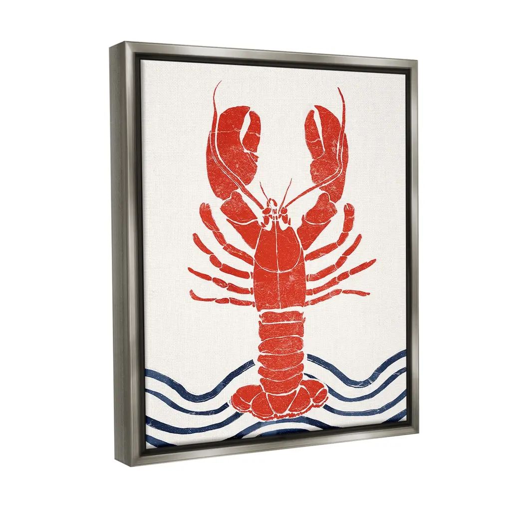 Elevate your home or office to the next level with Stupell Framed Floating Canvas Wall Art. Our premium hand-stretched canvas is mounted securely into a sturdy lightweight frame. The museum-style gap between the wrapped canvas and the box frame gives the illusion of floating artwork. Stupell Wall Art is made in the USA.Features: Dimensions: 17 x 1.7 x 21 Frame, 16 x 1.5 x 20 Canvas ArtFloating Frame Canvas Products are available in sizes 17"x21" and 25"x31". All Floating Frame Canvas Products have a 1.7" Depth.Wall Art is Ready to Hang with Hardware Free Hanging. No Installation required. For Easy Set Up Lean or Layer Artwork on Shelf or Against Wall. Artwork is Permently Fixed into the Frame.Our elevated 1.7" Thick Floating Frame is the perfect complement to our canvas style Wall Art. We use only the highest quality inks in house with industry leading printing solutions. Canvas is hand stretched over a durable wood foundation and then mounted securly into a Modern Box Frame. Made in the USA.Artwork Relates To: Food, Seafood, Animal, Invertebrate, Lobster, Sea Life, Abstract, Modern, Pattern, Waves, Beach, Nautical, LakeDesign by Yuyu Pont