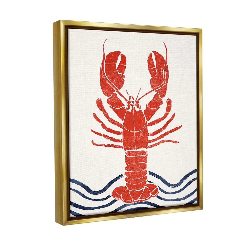 Stupell Modern Lobster With Waves Framed Floater Canvas Wall Art Design By Yuyu Pont - 25 X 31 - Gold