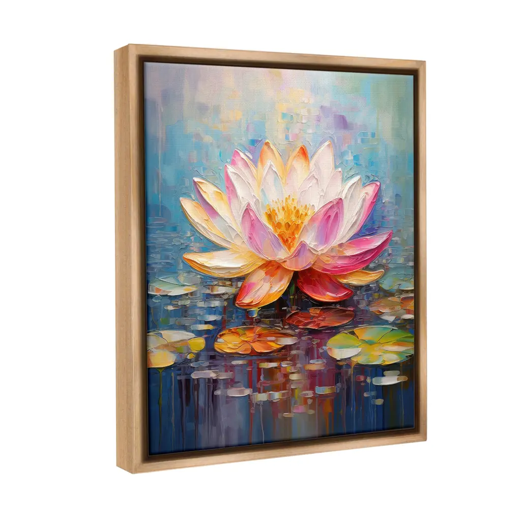 Elevate your home or office to the next level with Stupell Framed Floating Canvas Wall Art. Our premium hand-stretched canvas is mounted securely into a sturdy lightweight frame. The museum-style gap between the wrapped canvas and the box frame gives the illusion of floating artwork. Stupell Wall Art is made in the USA.Features: Dimensions: 17 x 1.7 x 21 Frame, 16 x 1.5 x 20 Canvas ArtFloating Frame Canvas Products are available in sizes 17"x21" and 25"x31". All Floating Frame Canvas Products have a 1.7" Depth.Wall Art is Ready to Hang with Hardware Free Hanging. No Installation required. For Easy Set Up Lean or Layer Artwork on Shelf or Against Wall. Artwork is Permently Fixed into the Frame.Our elevated 1.7" Thick Floating Frame is the perfect complement to our canvas style Wall Art. We use only the highest quality inks in house with industry leading printing solutions. Canvas is hand stretched over a durable wood foundation and then mounted securly into a Modern Box Frame. Made in the USA.Artwork Relates To: Flower, Plant, Petal, Painting, Lily, Pond Lily, Modern, LotusDesign by Gina Kelly