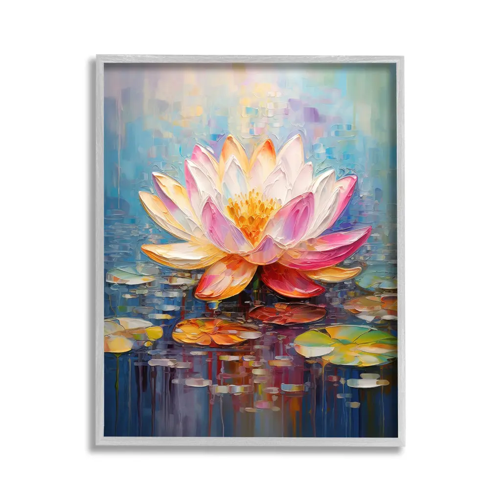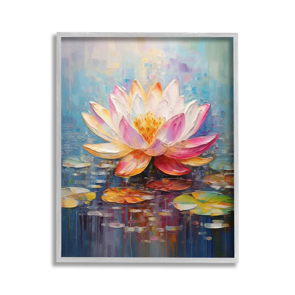 Add dimension to any room with our textured Framed Giclee Artwork. Our framed artwork is securely mounted into a 1.5-inch thick wood grain frame and ready to hang. Frames are available in three alluring styles: black, gray farmhouse and white. In addition, you should check out our oversized options if you want a statement piece. Stupell Wall Art is made in the USA.Features: Dimensions: 11 x 1.5 x 14 FramedFramed Giclee Products are available in the sizes 11"x14", 16"x20" or 24"x30". All Framed Giclee Products have a 1.5" Depth. Wall Art is Ready to Hang with Hardware Free Hanging. No installation required. For Easy Set Up Lean or Layer Artwork on Shelf or Against Wall.Our giclée prints are carefully mounted on a durable MDF backing, and then perfectly finished in a 1.5 inch thick woodgrain frame. Mounted frame colors include black, gray farmhouse and white. Made In USA.Artwork Relates To: Flower, Plant, Petal, Painting, Lily, Pond Lily, Modern, LotusDesign by Gina Kelly