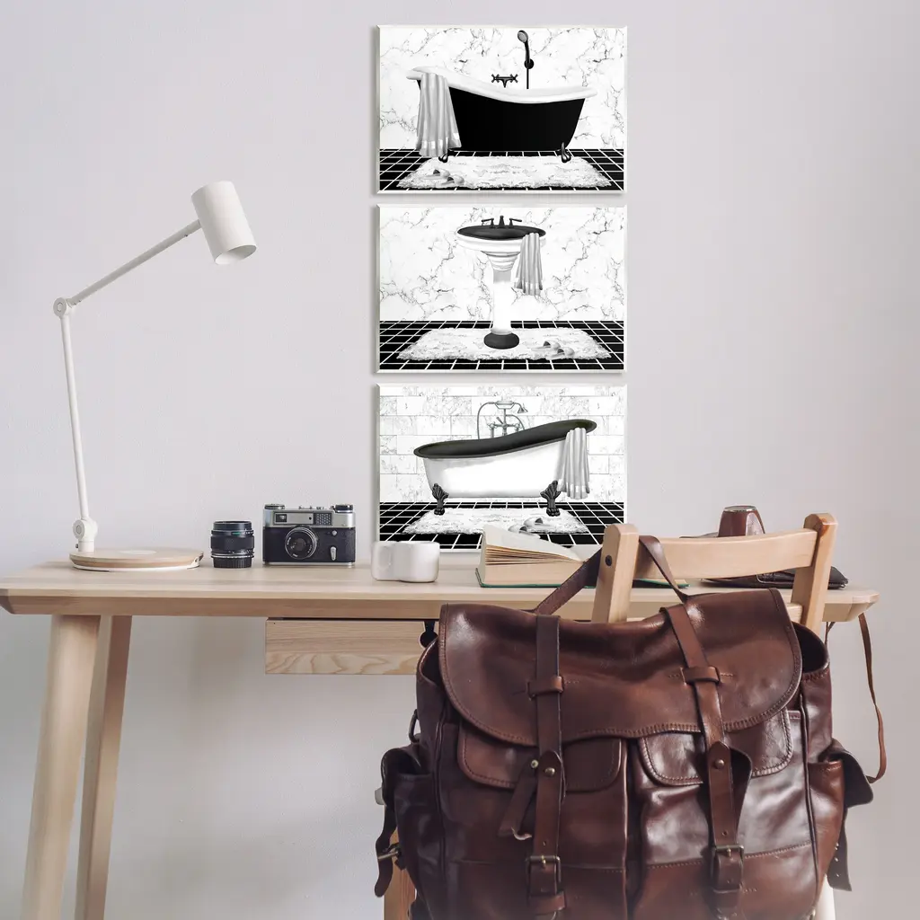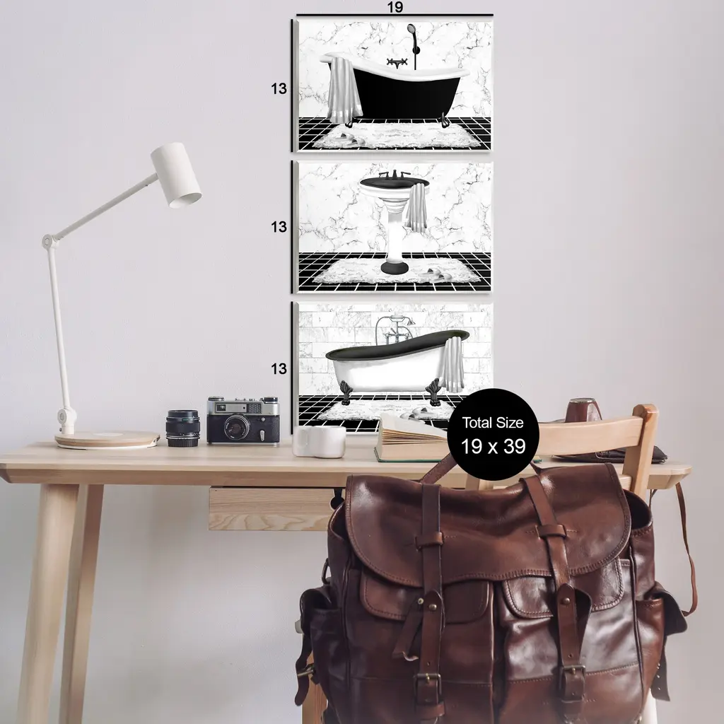 Fill any space with Stupell Wall Art Sets. Our wall plaques start as high-quality lithograph prints mounted on durable 0.5-inch thick MDF wood. Each piece is hand finished and comes with a fresh layer of white foil on the sides to give it a crisp, clean look. Plaques arrive ready to hang without installation and come with removable plastic corners to keep them from damage in transit. Wall Art is made in the USA.Features: Dimensions: 3 Piece Set, Each Panel is 15 x 0.5 x 10 InchesWooden Plaque Set Sizes Include Standard: 3pc, Each is 15 x 0.5 x 10 Oversized: 3pc, Each is 19 x 0.5 x 13Wall Art is Ready to Hang with Hardware Free Hanging. No installation required. For Easy Set Up Lean or Layer Artwork on Shelf or Against Wall.All of our wall plaques start off as high quality lithograph prints that are then mounted on durable 0.5 inch thick MDF wood. Each piece is hand finished and comes with a fresh layer of foil on the sides to give it a crisp clean look. Made In USA.Artwork Relates To: Bathtub, Bathroom, Modern, Marble, PatternDesign by Conrad Knutsen