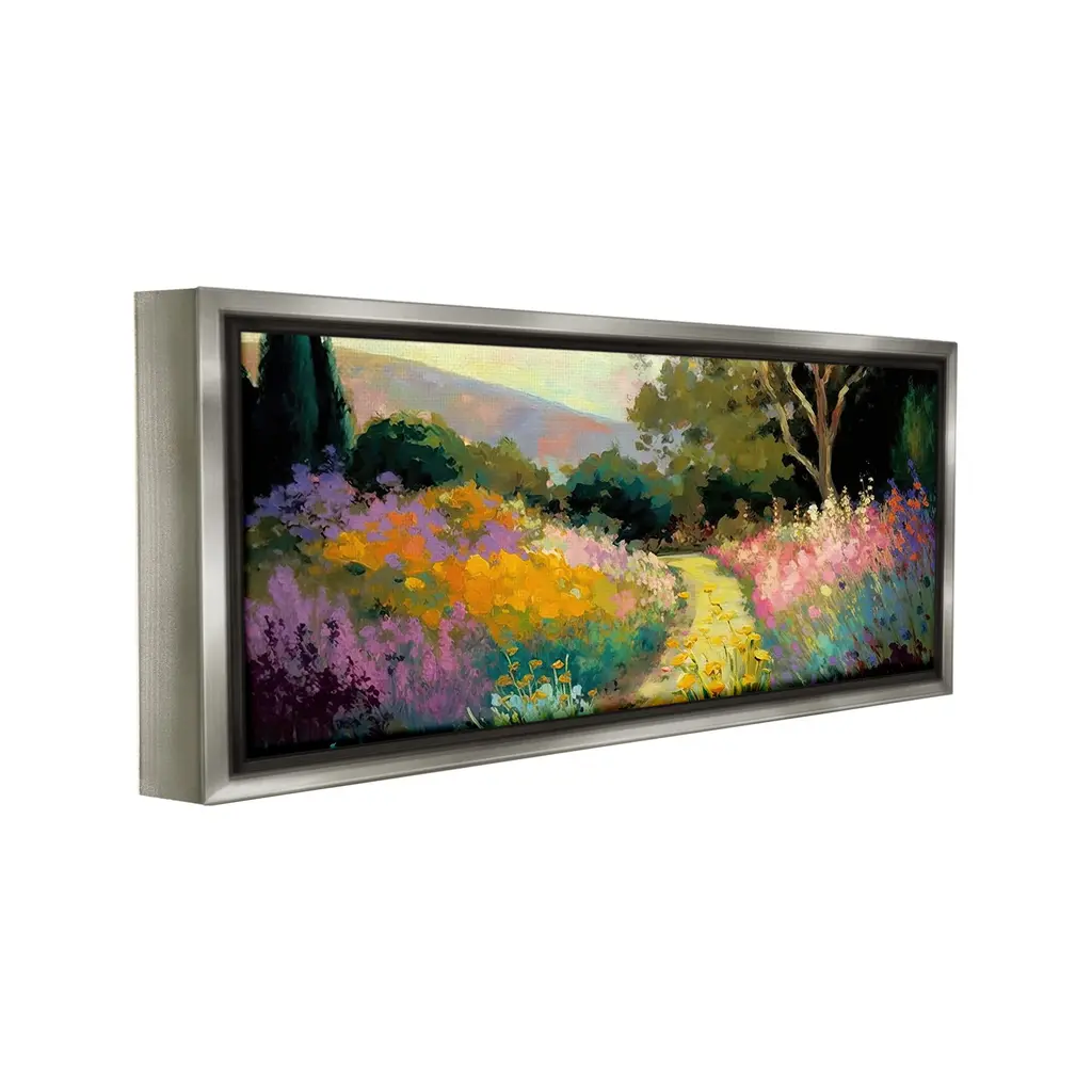 Elevate your home or office to the next level with Stupell Framed Floating Canvas Wall Art. Our premium hand-stretched canvas is mounted securely into a sturdy lightweight frame. The museum-style gap between the wrapped canvas and the box frame gives the illusion of floating artwork. Stupell Wall Art is made in the USA.Features: Dimensions: 25 x 1.7 x 11 Frame, 24 x 1.5 x 10 Canvas ArtFloating Frame Canvas Products are available in sizes 25"x11" and 31"x14". All Floating Frame Canvas Products have a 1.7" Depth.Wall Art is Ready to Hang with Hardware Free Hanging. No Installation required. For Easy Set Up Lean or Layer Artwork on Shelf or Against Wall. Artwork is Permently Fixed into the Frame.Our elevated 1.7" Thick Floating Frame is the perfect complement to our canvas style Wall Art. We use only the highest quality inks in house with industry leading printing solutions. Canvas is hand stretched over a durable wood foundation and then mounted securly into a Modern Box Frame. Made in the USA.Artwork Relates To: Nature, Flower, Plant, Floral, Botanical, Traditional, Country, Cottage, Path, Landscape, Abstract, ModernDesign by Gina Kelly