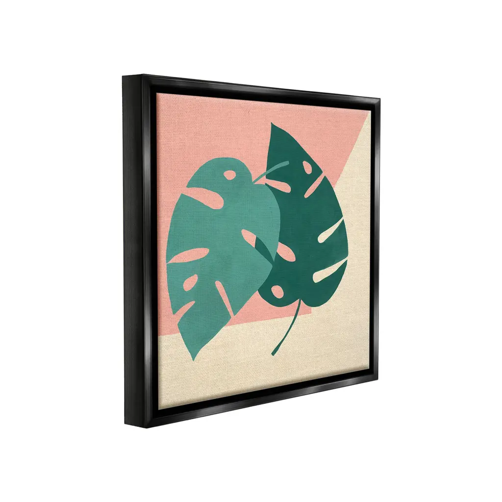 Elevate your home or office to the next level with Stupell Framed Floating Canvas Wall Art. Our premium hand-stretched canvas is mounted securely into a sturdy lightweight frame. The museum-style gap between the wrapped canvas and the box frame gives the illusion of floating artwork. Stupell Wall Art is made in the USA.Features: Dimensions: 18 x 1.7 x 18 Frame, 17 x 1.5 x 17 Canvas ArtFloating Frame Canvas Products are available in sizes 18"x18" and 25"x25". All Floating Frame Canvas Products have a 1.7" Depth.Wall Art is Ready to Hang with Hardware Free Hanging. No Installation required. For Easy Set Up Lean or Layer Artwork on Shelf or Against Wall. Artwork is Permently Fixed into the Frame.Our elevated 1.7" Thick Floating Frame is the perfect complement to our canvas style Wall Art. We use only the highest quality inks in house with industry leading printing solutions. Canvas is hand stretched over a durable wood foundation and then mounted securly into a Modern Box Frame. Made in the USA.Artwork Relates To: Leaf, Plant, Botanical, Modern, Pattern, Shape, Abstract, MonsteraDesign by Ruth Fromstein
