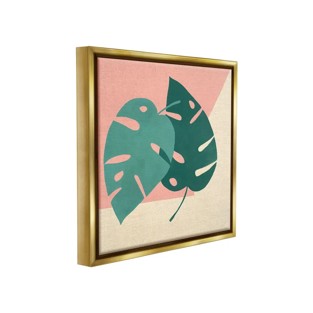 Elevate your home or office to the next level with Stupell Framed Floating Canvas Wall Art. Our premium hand-stretched canvas is mounted securely into a sturdy lightweight frame. The museum-style gap between the wrapped canvas and the box frame gives the illusion of floating artwork. Stupell Wall Art is made in the USA.Features: Dimensions: 18 x 1.7 x 18 Frame, 17 x 1.5 x 17 Canvas ArtFloating Frame Canvas Products are available in sizes 18"x18" and 25"x25". All Floating Frame Canvas Products have a 1.7" Depth.Wall Art is Ready to Hang with Hardware Free Hanging. No Installation required. For Easy Set Up Lean or Layer Artwork on Shelf or Against Wall. Artwork is Permently Fixed into the Frame.Our elevated 1.7" Thick Floating Frame is the perfect complement to our canvas style Wall Art. We use only the highest quality inks in house with industry leading printing solutions. Canvas is hand stretched over a durable wood foundation and then mounted securly into a Modern Box Frame. Made in the USA.Artwork Relates To: Leaf, Plant, Botanical, Modern, Pattern, Shape, Abstract, MonsteraDesign by Ruth Fromstein