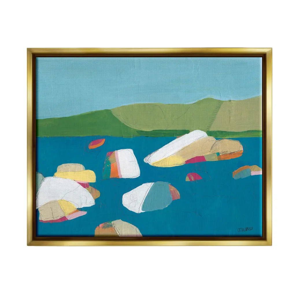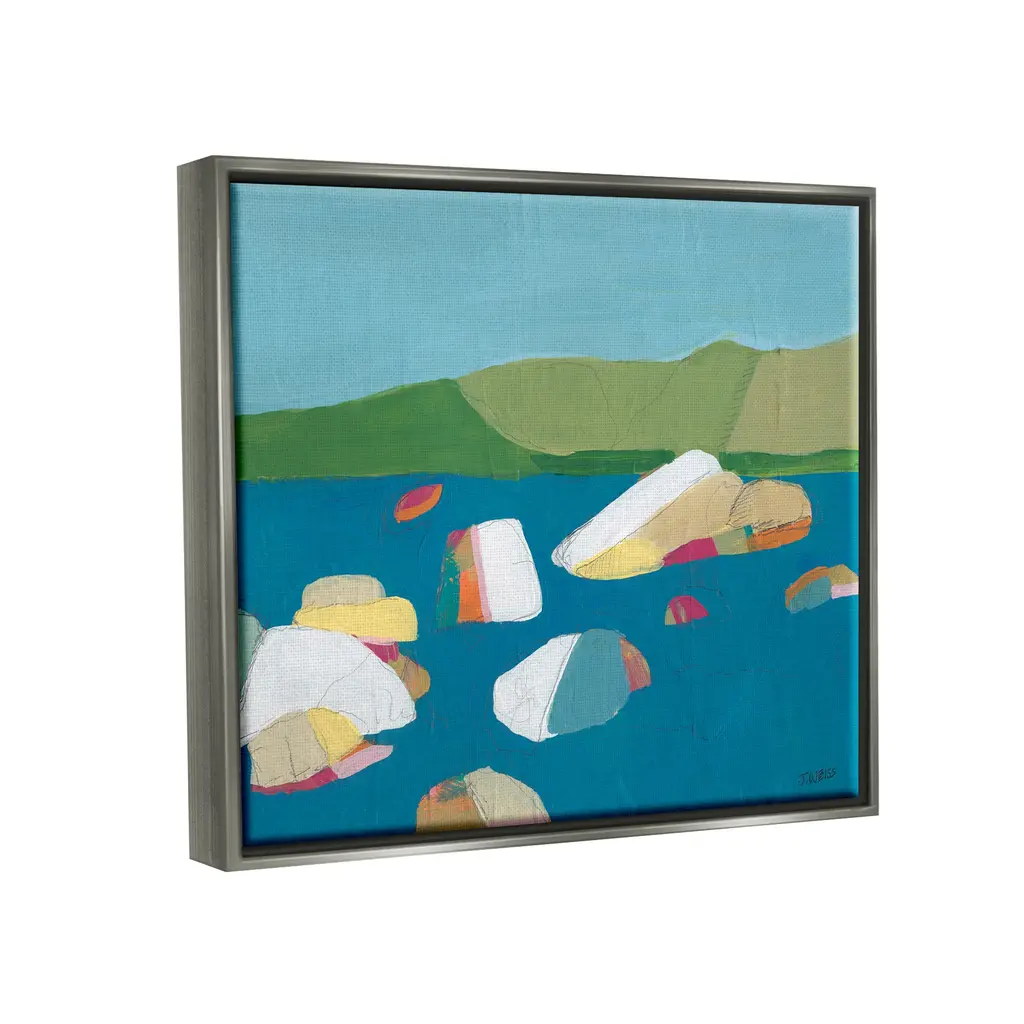 Elevate your home or office to the next level with Stupell Framed Floating Canvas Wall Art. Our premium hand-stretched canvas is mounted securely into a sturdy lightweight frame. The museum-style gap between the wrapped canvas and the box frame gives the illusion of floating artwork. Stupell Wall Art is made in the USA.Features: Dimensions: 21 x 1.7 x 17 Frame, 20 x 1.5 x 16 Canvas ArtFloating Frame Sizes Include Standard: 21 x 1.7 x 17 Oversized: 31 x 1.7 x 25Wall Art is Ready to Hang - No Installation or Hardware Needed. For Easy Set Up Lean or Layer Artwork on Shelf or Against Wall.Our elevated 1.7" Thick Floating Frame is the perfect complement to our canvas style Wall Art. We use only the highest quality inks in house with industry leading printing solutions. Canvas is hand stretched over a durable wood foundation and then mounted securly into a Modern Box Frame. Made in the USA.Artwork Relates To: Painting, Modern, Nature, Sea, Water, Rock, OceanDesign by Jan Weiss