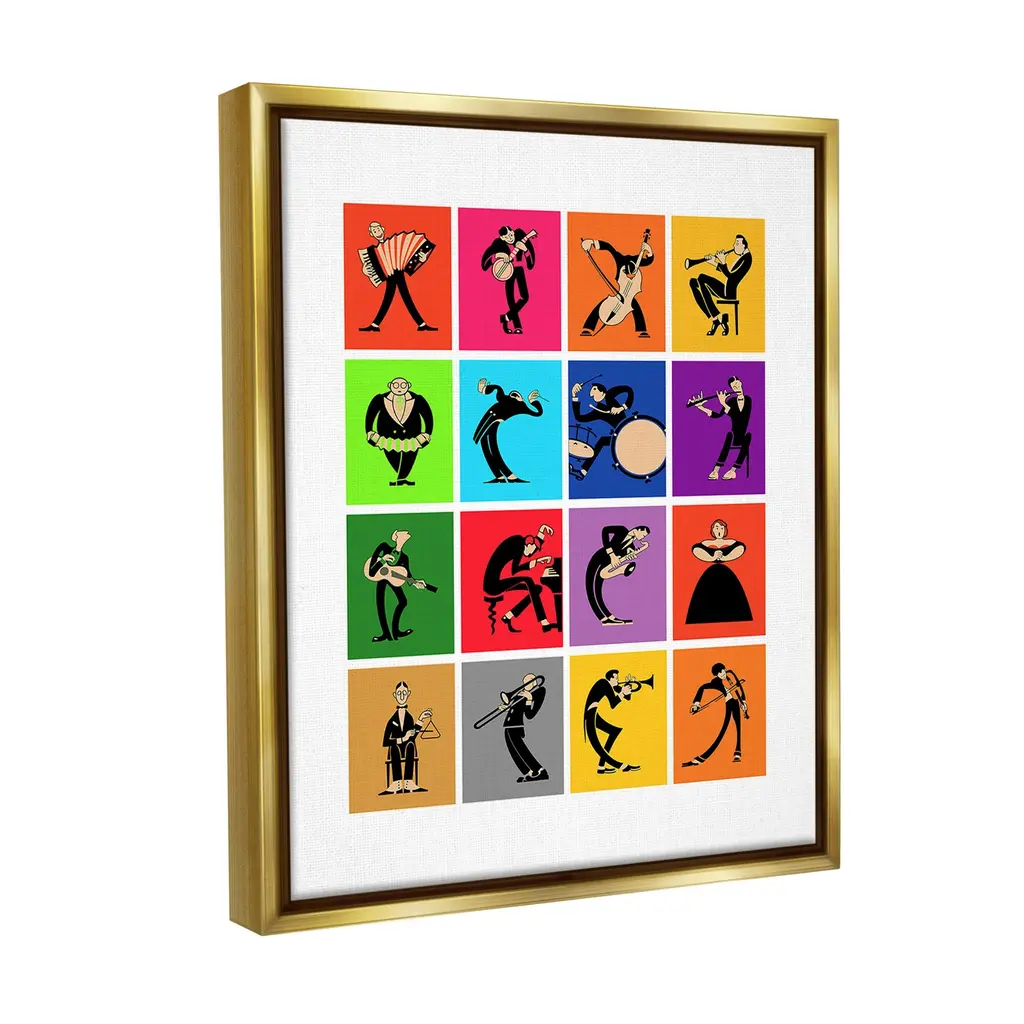 Elevate your home or office to the next level with Stupell Framed Floating Canvas Wall Art. Our premium hand-stretched canvas is mounted securely into a sturdy lightweight frame. The museum-style gap between the wrapped canvas and the box frame gives the illusion of floating artwork. Stupell Wall Art is made in the USA.Features: Dimensions: 17 x 1.7 x 21 Frame, 16 x 1.5 x 20 Canvas ArtFloating Frame Canvas Products are available in sizes 17"x21" and 25"x31". All Floating Frame Canvas Products have a 1.7" Depth.Wall Art is Ready to Hang with Hardware Free Hanging. No Installation required. For Easy Set Up Lean or Layer Artwork on Shelf or Against Wall. Artwork is Permently Fixed into the Frame.Our elevated 1.7" Thick Floating Frame is the perfect complement to our canvas style Wall Art. We use only the highest quality inks in house with industry leading printing solutions. Canvas is hand stretched over a durable wood foundation and then mounted securly into a Modern Box Frame. Made in the USA.Artwork Relates To: Person, Music, Musician, Instrument, Jazz, Dance, Piano, Violin, Saxophone, Band, Orchestra, ModernDesign by Mark Rogan
