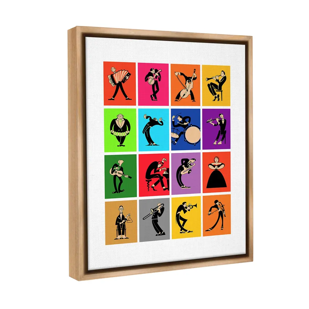 Elevate your home or office to the next level with Stupell Framed Floating Canvas Wall Art. Our premium hand-stretched canvas is mounted securely into a sturdy lightweight frame. The museum-style gap between the wrapped canvas and the box frame gives the illusion of floating artwork. Stupell Wall Art is made in the USA.Features: Dimensions: 17 x 1.7 x 21 Frame, 16 x 1.5 x 20 Canvas ArtFloating Frame Canvas Products are available in sizes 17"x21" and 25"x31". All Floating Frame Canvas Products have a 1.7" Depth.Wall Art is Ready to Hang with Hardware Free Hanging. No Installation required. For Easy Set Up Lean or Layer Artwork on Shelf or Against Wall. Artwork is Permently Fixed into the Frame.Our elevated 1.7" Thick Floating Frame is the perfect complement to our canvas style Wall Art. We use only the highest quality inks in house with industry leading printing solutions. Canvas is hand stretched over a durable wood foundation and then mounted securly into a Modern Box Frame. Made in the USA.Artwork Relates To: Person, Music, Musician, Instrument, Jazz, Dance, Piano, Violin, Saxophone, Band, Orchestra, ModernDesign by Mark Rogan