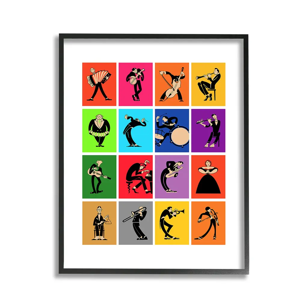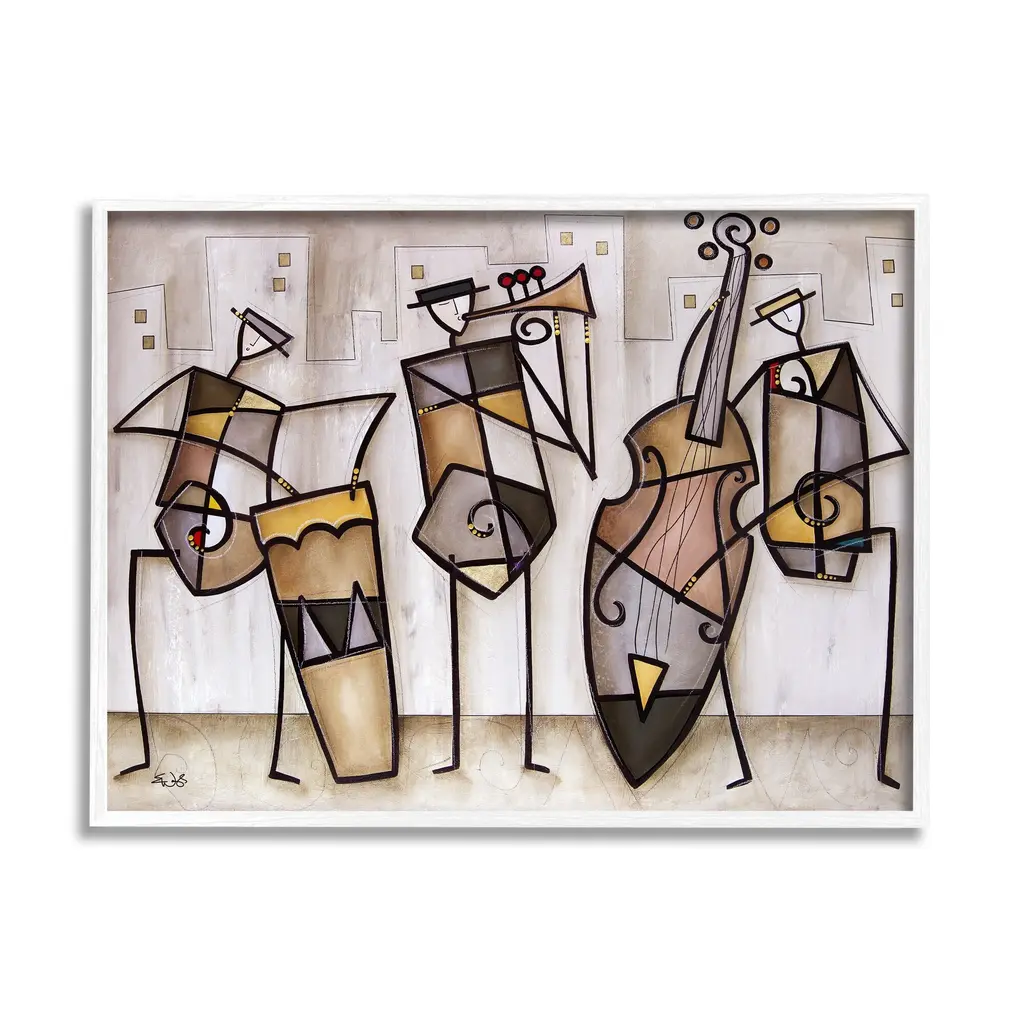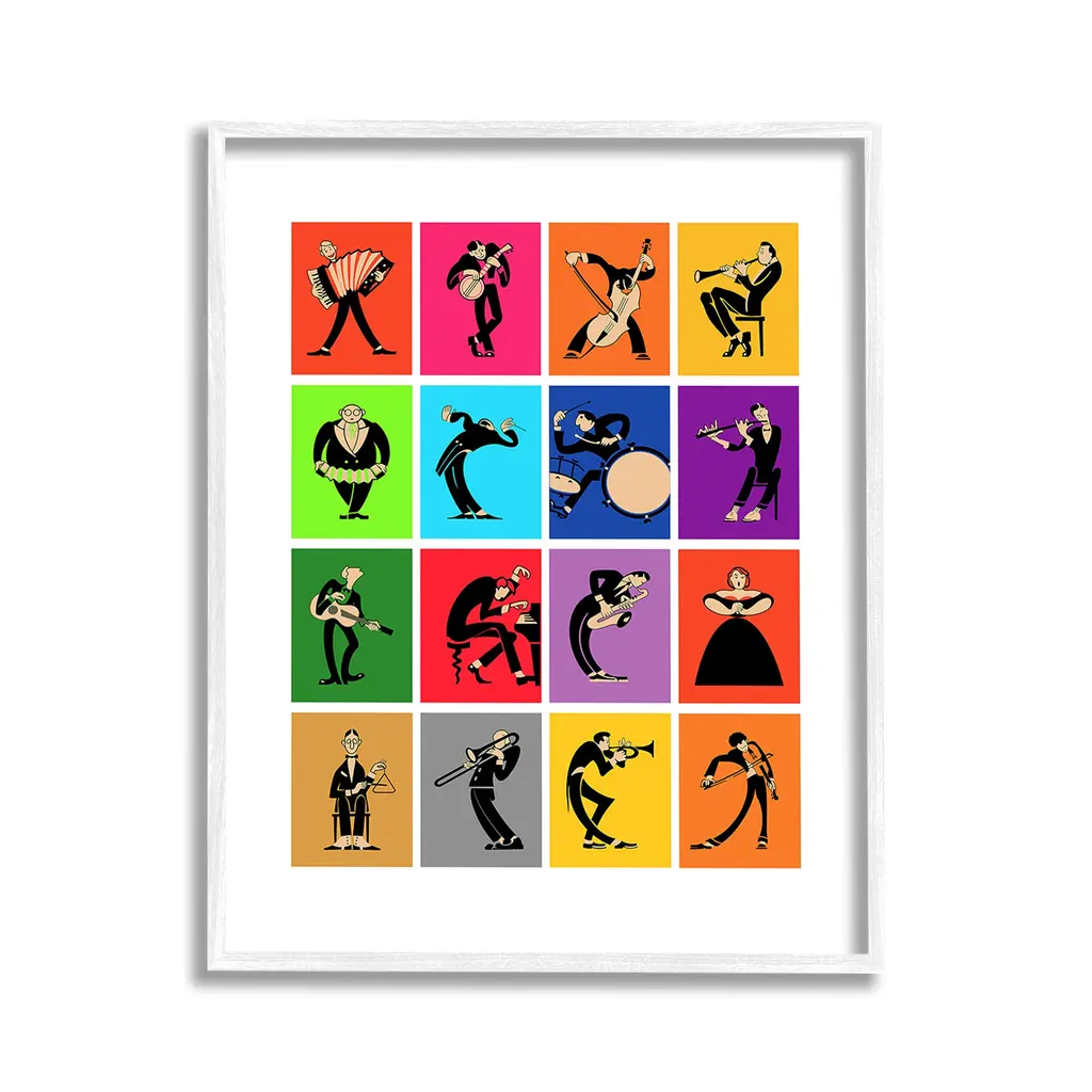 Our wall plaques start as high-quality lithograph prints mounted on durable 0.5-inch thick MDF wood. Each piece is hand finished and comes with a fresh layer of white foil on the sides to give it a crisp, clean look. Plaques arrive ready to hang without installation and come with removable plastic corners to keep them from damage in transit. Stupell Wall Art is made in the USA.Features: Dimensions: 10 x 0.5 x 15 InchesWall Plaque Product Sizes Include 10"x15" and 13"x19". All wall plaque products have a 0.5" Depth. Wall Art is Ready to Hang with Hardware Free Hanging. No installation required. For Easy Set Up Lean or Layer Artwork on Shelf or Against Wall.All of our wall plaques start off as high quality lithograph prints that are then mounted on durable 0.5 inch thick MDF wood. Each piece is hand finished and comes with a fresh layer of foil on the sides to give it a crisp clean look. Made In USA.Artwork Relates To: Person, Music, Musician, Instrument, Jazz, Dance, Piano, Violin, Saxophone, Band, Orchestra, ModernDesign by Mark Rogan
