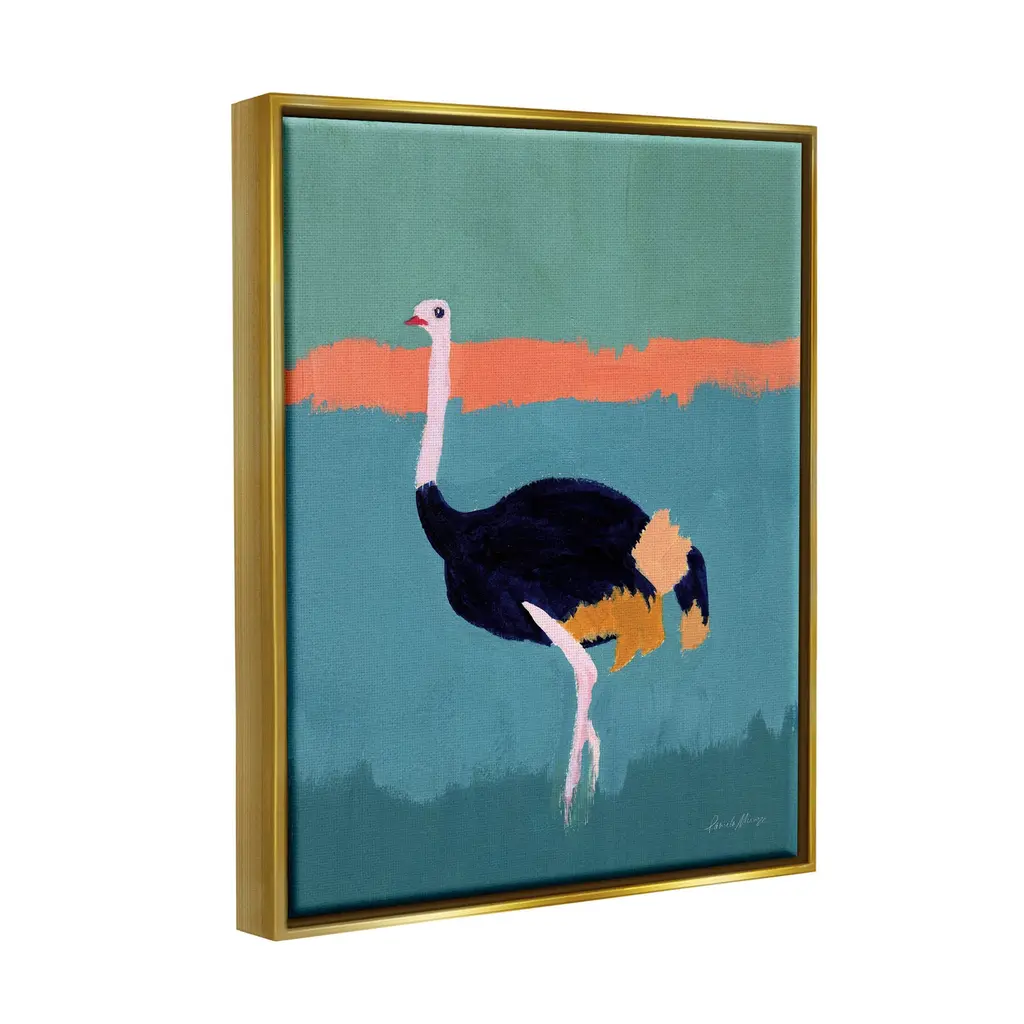Stupell Modern Ostrich Wildlife Painting Framed Floater Canvas Wall Art, Design By Pamela Munger - 17 X 21 - Gold