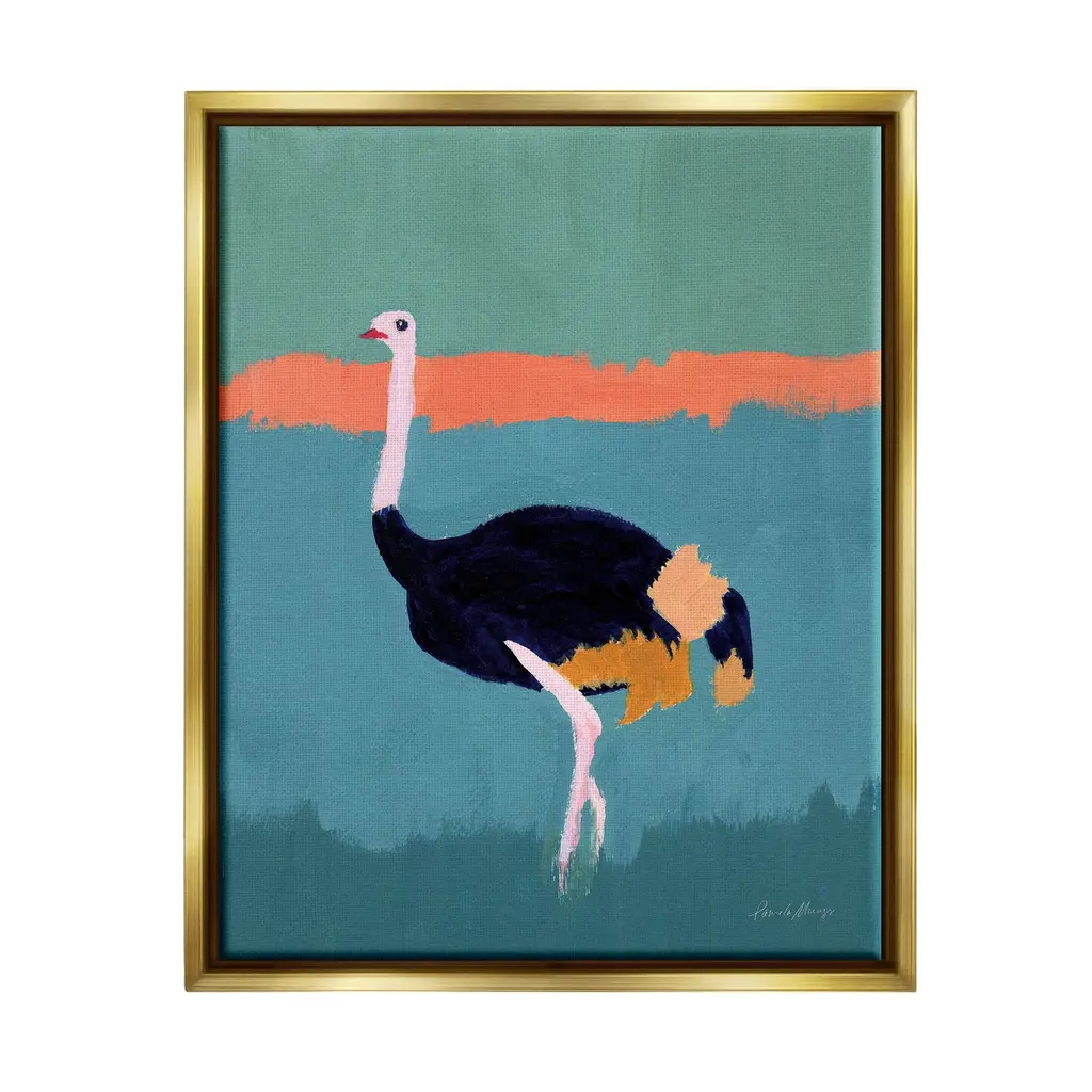Stupell Modern Ostrich Wildlife Painting Framed Floater Canvas Wall Art, Design By Pamela Munger - 25 X 31 - Gold