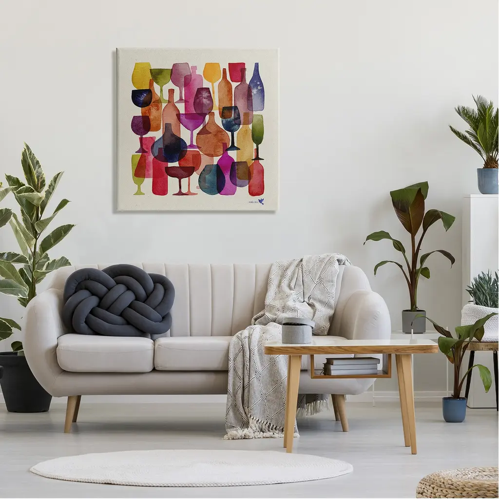 We create our stretched canvas to the highest standards. Using only the highest quality inks and canvas on Mimaki printers, we hand-cut and stretch each piece over a 1.5-inch thick wooden frame for hanging. As a result, the art comes ready to hang on the sturdy ledge with no installation required. Stupell Wall Art is made in the USA.Features: Dimensions: 17 x 1.5 x 17 InchesStretched Canvas Sizes Include Standard: 17 x 1.5 x 17 Large: 24 x 1.5 x 24 X-Large: 30 x 1.5 x 30 Oversized: 36 x 1.5 x 36Wall Art is Ready to Hang - No Installation or Hardware Needed. For Easy Set Up Lean or Layer Artwork on Shelf or Against Wall.Our stretched canvas is created with the highest standards. We use only the highest quality inks and canvas on our in house Mimaki printers, and then hand cut and stretch each piece over a 1.5 inch thick wooden frame for hanging. Made In USA.Artwork Relates To: Modern, Painting, Wine Glass, Champagne Glass, KitchenDesign by Maria Over