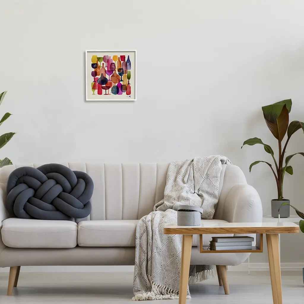 Add dimension to any room with our textured Framed Giclee Artwork. Our framed artwork is securely mounted into a 1.5-inch thick wood grain frame and ready to hang. Frames are available in three alluring styles: black, gray farmhouse and white. In addition, you should check out our oversized options if you want a statement piece. Stupell Wall Art is made in the USA.Features: Dimensions: 12 x 1.5 x 12 FramedFramed Giclee Sizes Include Standard: 12 x 1.5 x 12 Large: 17 x 1.5 x 17 Oversized: 24 x 1.5 x 24Wall Art is Ready to Hang - No Installation or Hardware Needed. For Easy Set Up Lean or Layer Artwork on Shelf or Against Wall.Our giclée prints are carefully mounted on a durable MDF backing, and then perfectly finished in a 1.5 inch thick woodgrain frame. Mounted frame colors include black, gray farmhouse and white. Made In USA.Artwork Relates To: Modern, Painting, Wine Glass, Champagne Glass, KitchenDesign by Maria Over